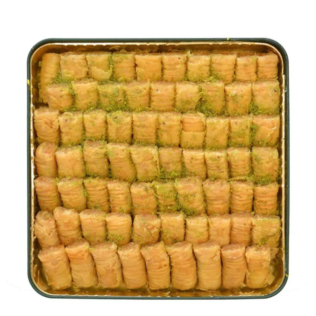 - كل قطعة مصنوعة من طبقات رقيقة مقرمشة من عجينة الفيلو محشوة بالمكسرات المفرومة المحمصة ومغموسة في شراب حلو