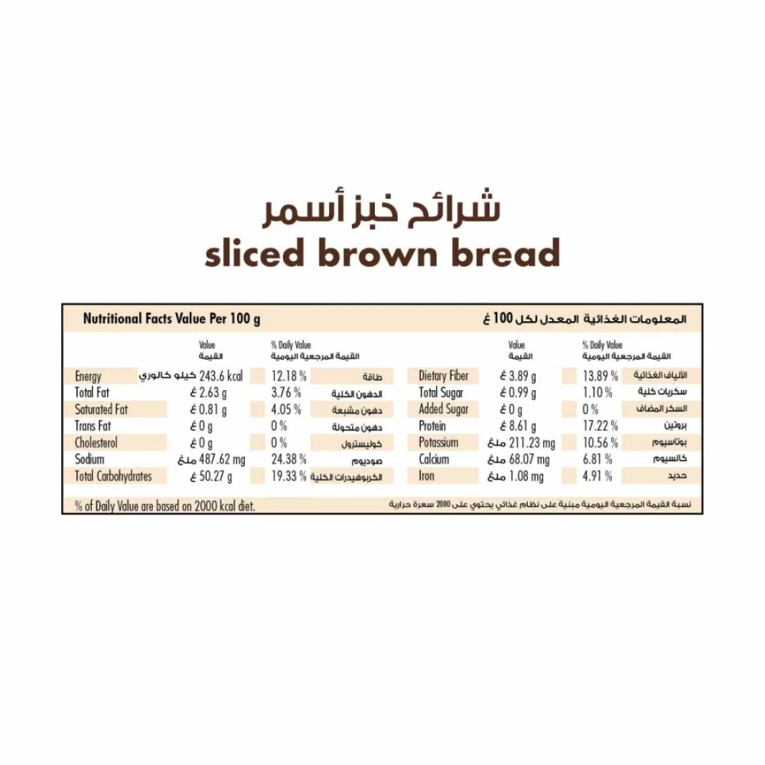 - تحتوي المنتجات على كميات متفاوتة من الألياف