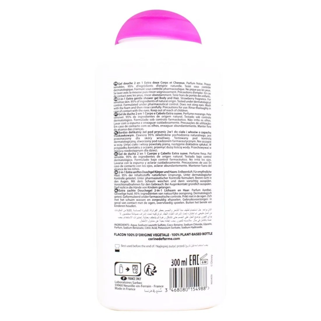 كورين دي فارم جل الاستحمام 2 في 1 للشعر والجسم ديزني برينسيس بينك 300 ملل