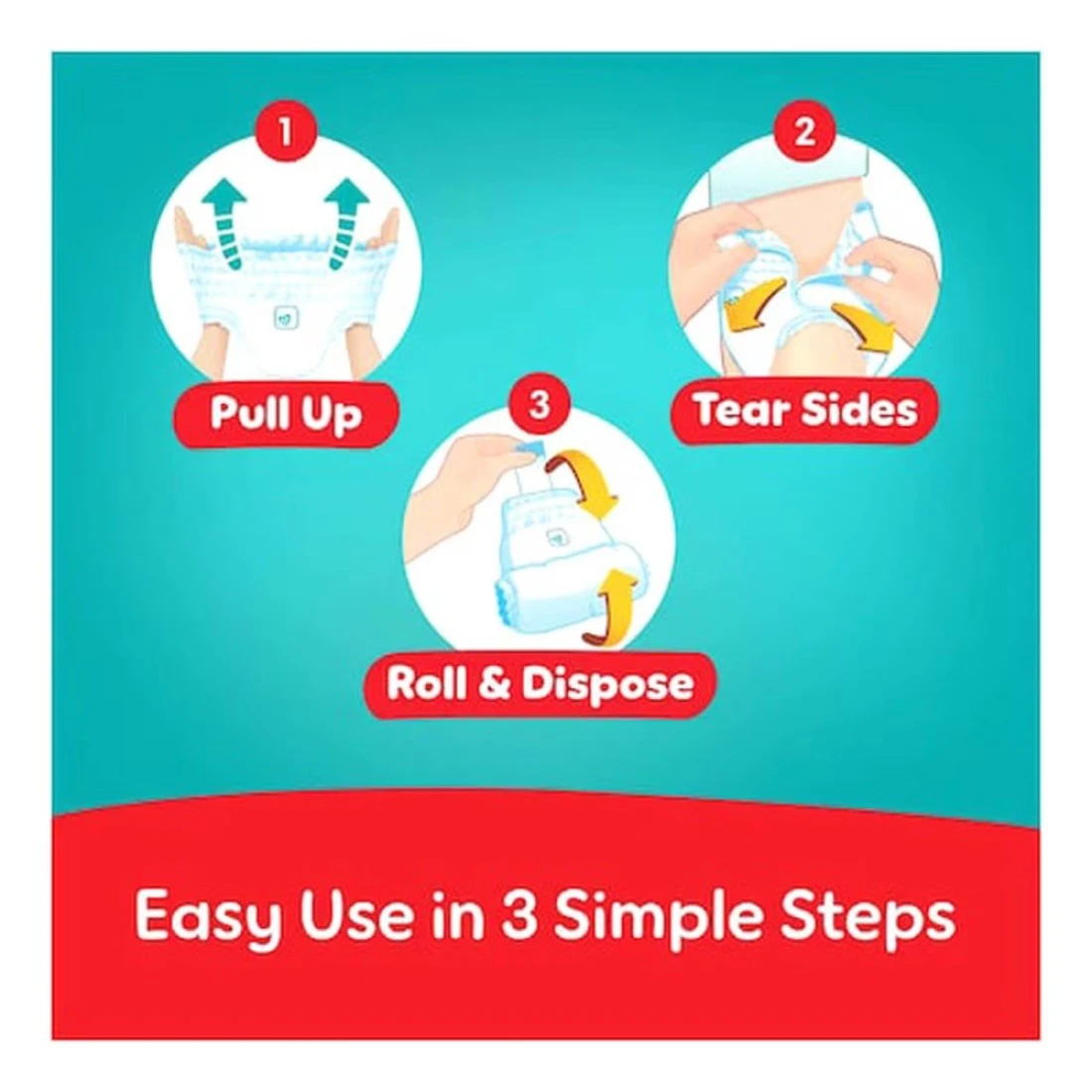 - سهل الارتداء والخلع، مما يجعل تغيير الحفاضات سريعًا وخاليًا من المتاعب