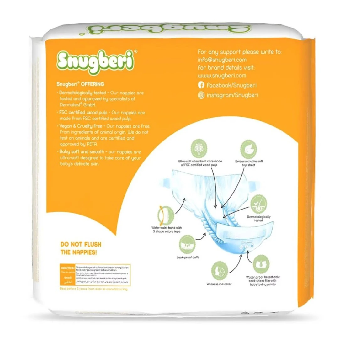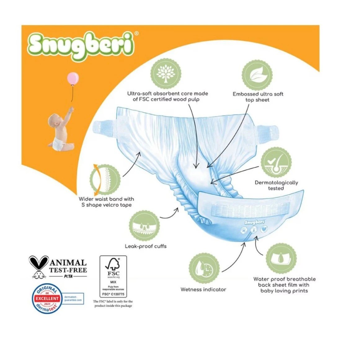 - مادة فائقة النعومة: حفاضات سنوغبيري مصنوعة من نسيج ناعم عالي الجودة يضمن أقصى قدر من الراحة لبشرة طفلك الرقيقة