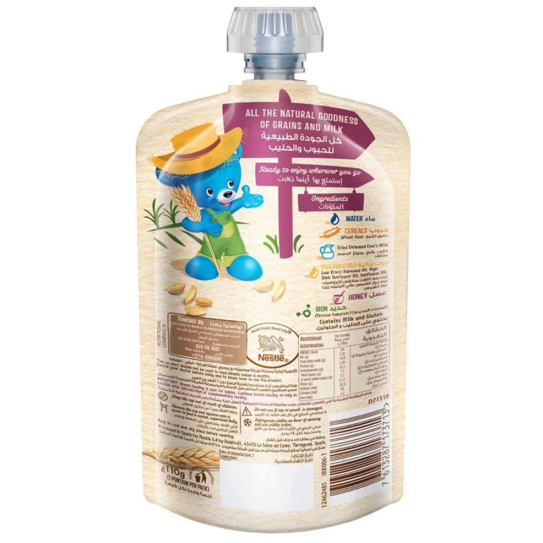 حبوب و حليب من نستله سيريلاك هي كيس طعام أطفال مغذي ولذيذ، مُصمم خصيصًا للأطفال من عمر 6 أشهر، غني بحبوب مختارة وعناصر غذائية ليستمتع بها طفلك. يُعد هذا خيارًا عمليًا أثناء التنقل لأي مناسبة لتناول الوجبات الخفيفة، مما يجعل الآباء يشعرون بالاستعداد لتهدئة أطفالهم في كل موقف. مُجهز لتوفير جميع العناصر الغذائية الصحية التي يحتاجها طفلك: - سيساعده غنى الحبوب على تغذية وقت لعبه -سيساعد الحديد نموه المعرفي - الكالسيوم لدعم نمو صحي. عند تقديم الأطعمة الصلبة لطفلك، فإن هذا الكيس المريح والجاهز للتقديم مع فوهة التقديم سيمنحك مزيدًا من التحكم، مما يعني هدرًا أقل وفوضى أقل، مثاليًا أثناء التنقل! كل منتج من منتجاتنا يجتاز أكثر من 100 فحص جودة من نستله.