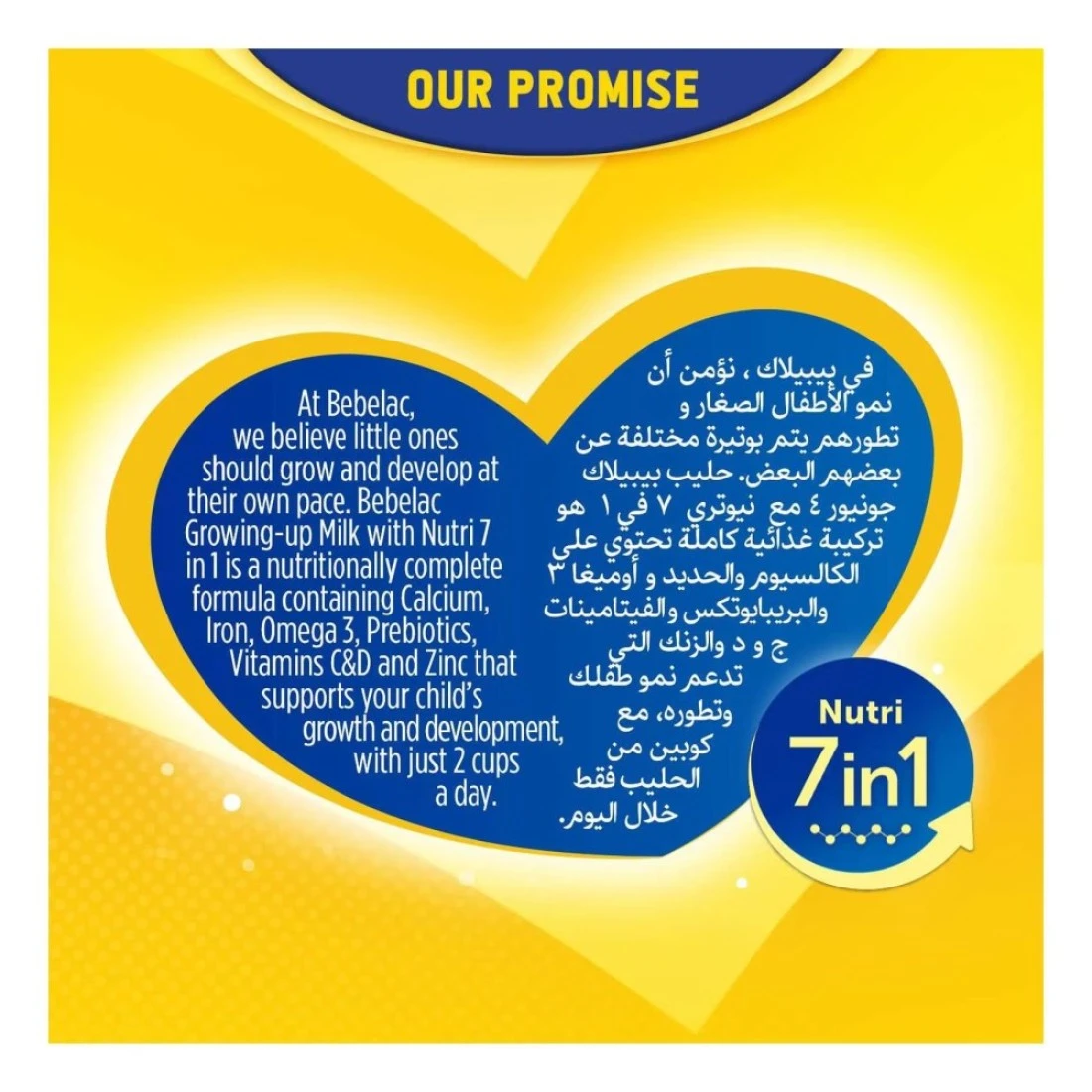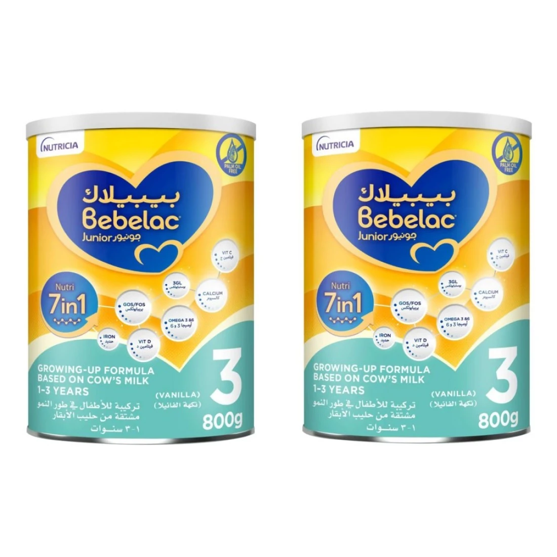 بيبيلاك جونيور نيوتري 7 في 1 تركيبة حليب بودرة للنمو بنكهة الفانيليا، مصممة خصيصاً للأطفال من عمر سنة إلى 3 سنوات. توفر هذه التركيبة، التي تزن 800 غرام، العناصر الغذائية الأساسية لدعم النمو والتطور الصحي خلال هذه المرحلة الحاسمة. غنية بمزيج متوازن من الفيتامينات والمعادن وحمض الدوكوساهيكسانويك (DHA)، مما يعزز الوظائف الإدراكية والمناعة والصحة العامة. تلبي تركيبة 7 في 1 احتياجات طفلك الغذائية المتنوعة، وتضمن له الدعم المناسب لأسلوب حياته النشط. بفضل مذاق الفانيليا اللذيذ، يجعل بيبيلاك جونيور نيوتري وقت الطعام ممتعاً ويساعد على بناء عادات غذائية صحية.