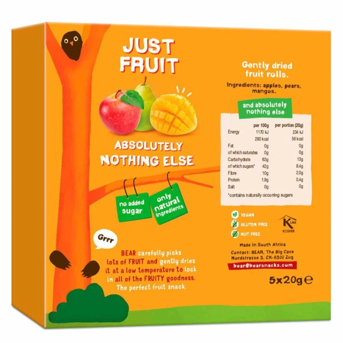 - تحتوي كل عبوة على 20 غرامًا من الوجبات الخفيفة اللذيذة من الفاكهة، مثالية للاستمتاع بها أثناء التنقل