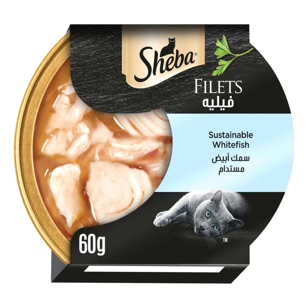 شيبا فيليه طعام رطب للقطط من بنكهة سمك أبيض مستدامة في المرق، 60 غرام