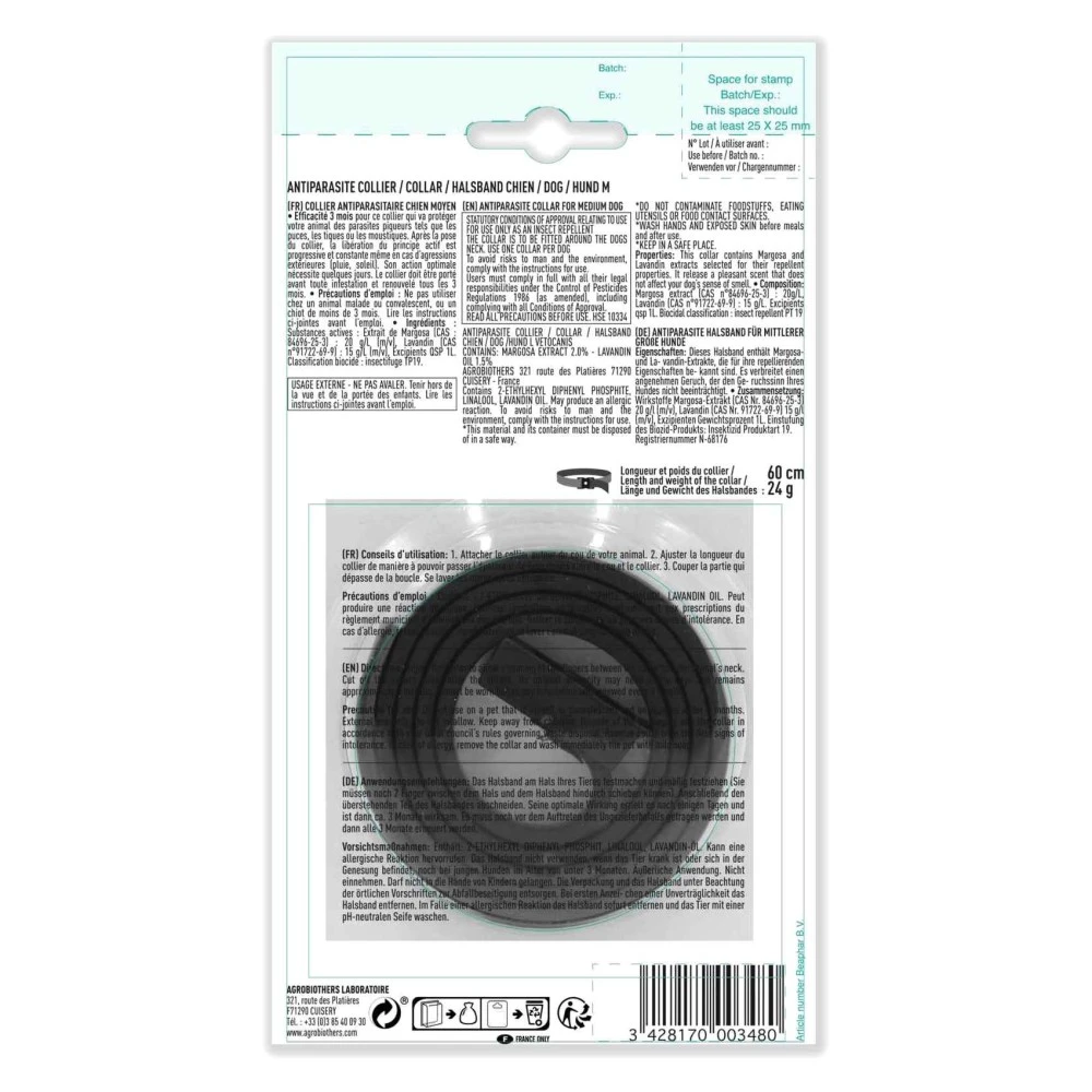 - مع مستخلصات النيم واللافندر، تنبعث من هذا الطوق رائحة طاردة للطفيليات دون التأثير على حاسة الشم لدى كلبك