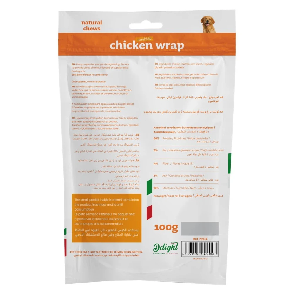 دلايت مكافآت عظم ملفوفة بالدجاج وجبة خفيفة للكلاب 100 غرام