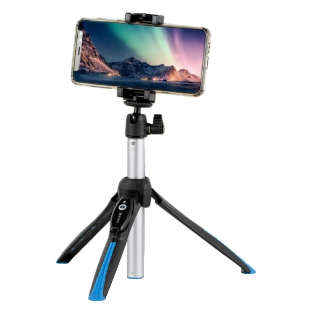 بنرو مي فوتو BK15 حامل ثلاثي القوائم صغير وعصا سيلفي مع جهاز تحكم عن بُعد - أسود وأزرق-