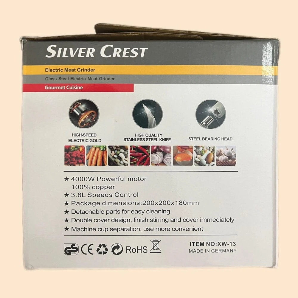 Fitto Electric Meat Grinder 3.8L is designed for maximum efficiency in grinding various types of meats, vegetables, and more. With a robust motor and durable stainless steel blades, this meat grinder ensures smooth and quick operation, reducing prep time. It allows you to grind meat for sausages, burgers, meatballs, and more with ease. A powerful appliance for all your grinding needs in the kitchen.