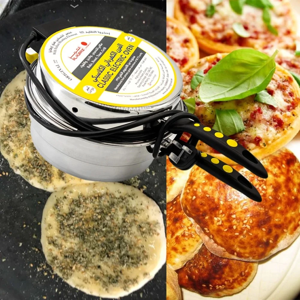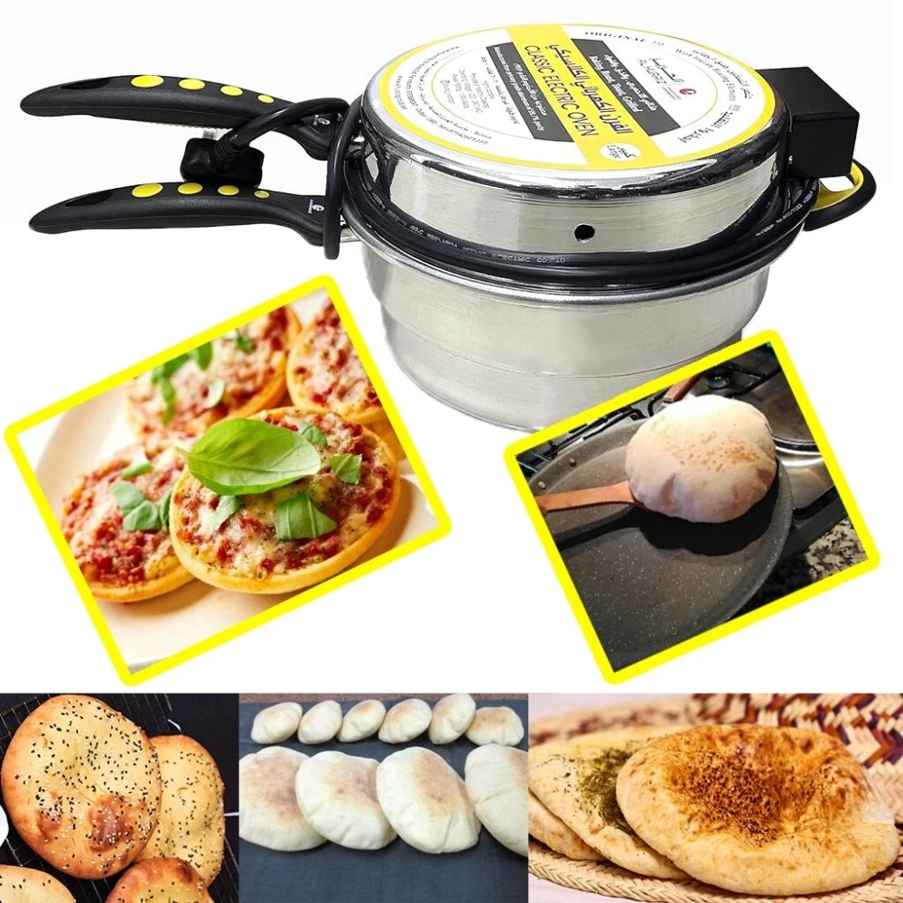 فرن صانع الخبز العربي مع عناصر تسخين إيطالية، سعة 5.5 لتر، 28 سم، فرن كهربائي صغير للخبز المسطح - خبز البيتا والروتي والبيتزا الصغيرة والمزيد