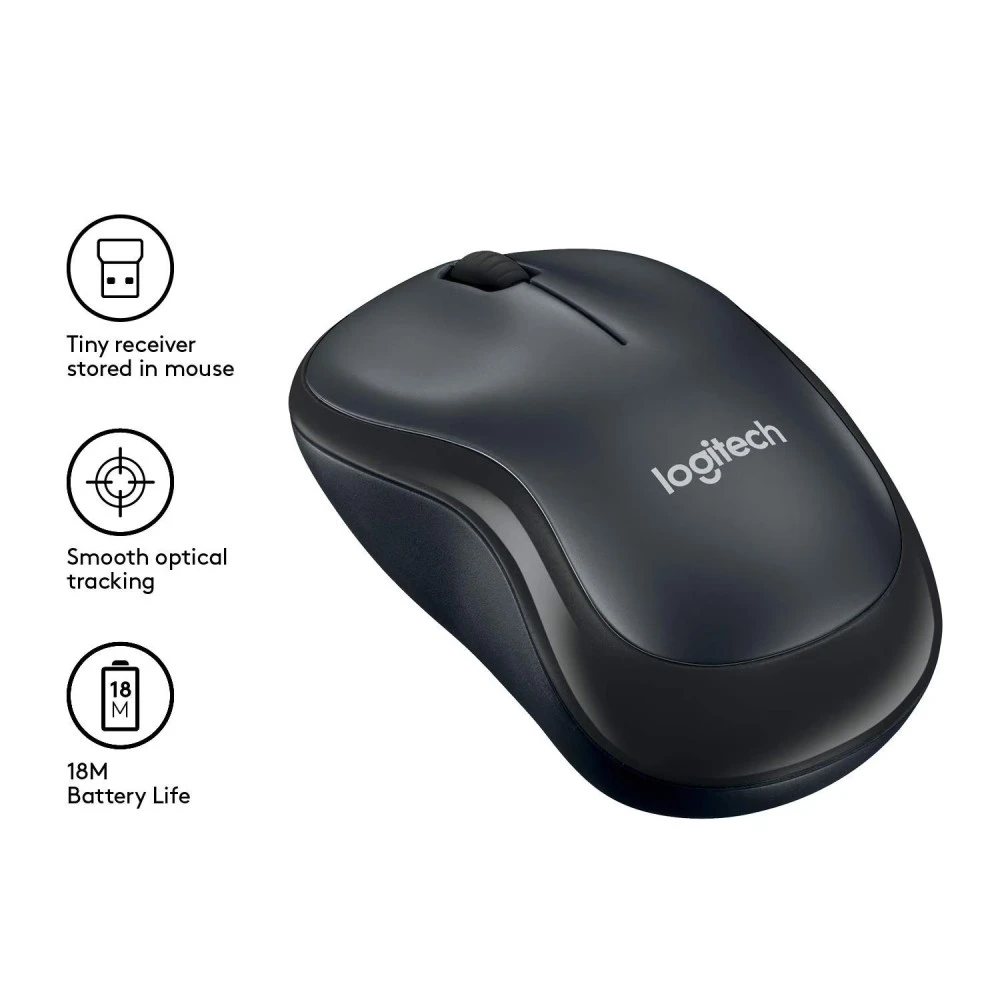 - متينة وموثوقة، تعمل M220 أيضًا لمدة تصل إلى 18 شهرًا دون تغيير البطاريات بفضل زر التشغيل/الإيقاف ووضع السكون التلقائي لتوفير الطاقة