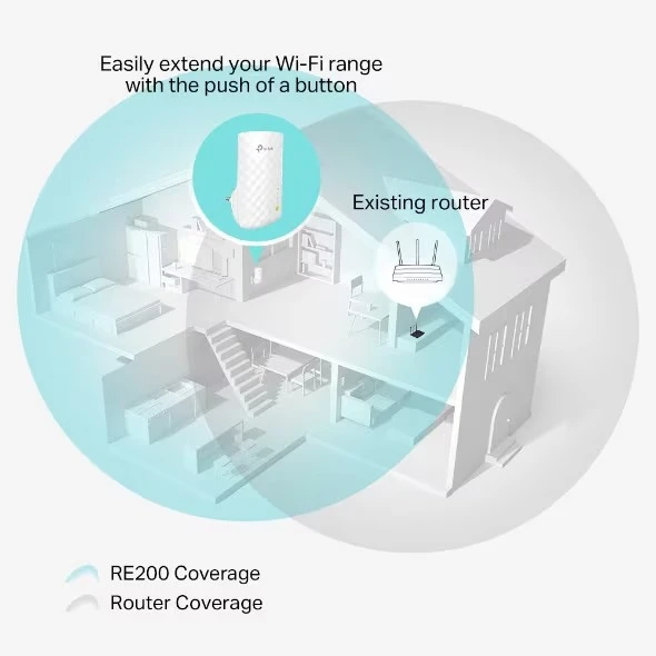 TP-Link AC750 WiFi Range Extender RE200 ، وصلة WiFi سهلة الوضع المرن