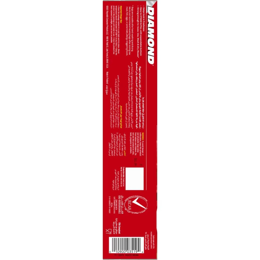 - تعتبر الأكياس ذات السحاب دايموند مثالية لتخزين وتعبئة الطعام سواء في المنزل أو أثناء التنقل في العمل أو المدرسة أو أثناء السفر للنزهات وغيرها