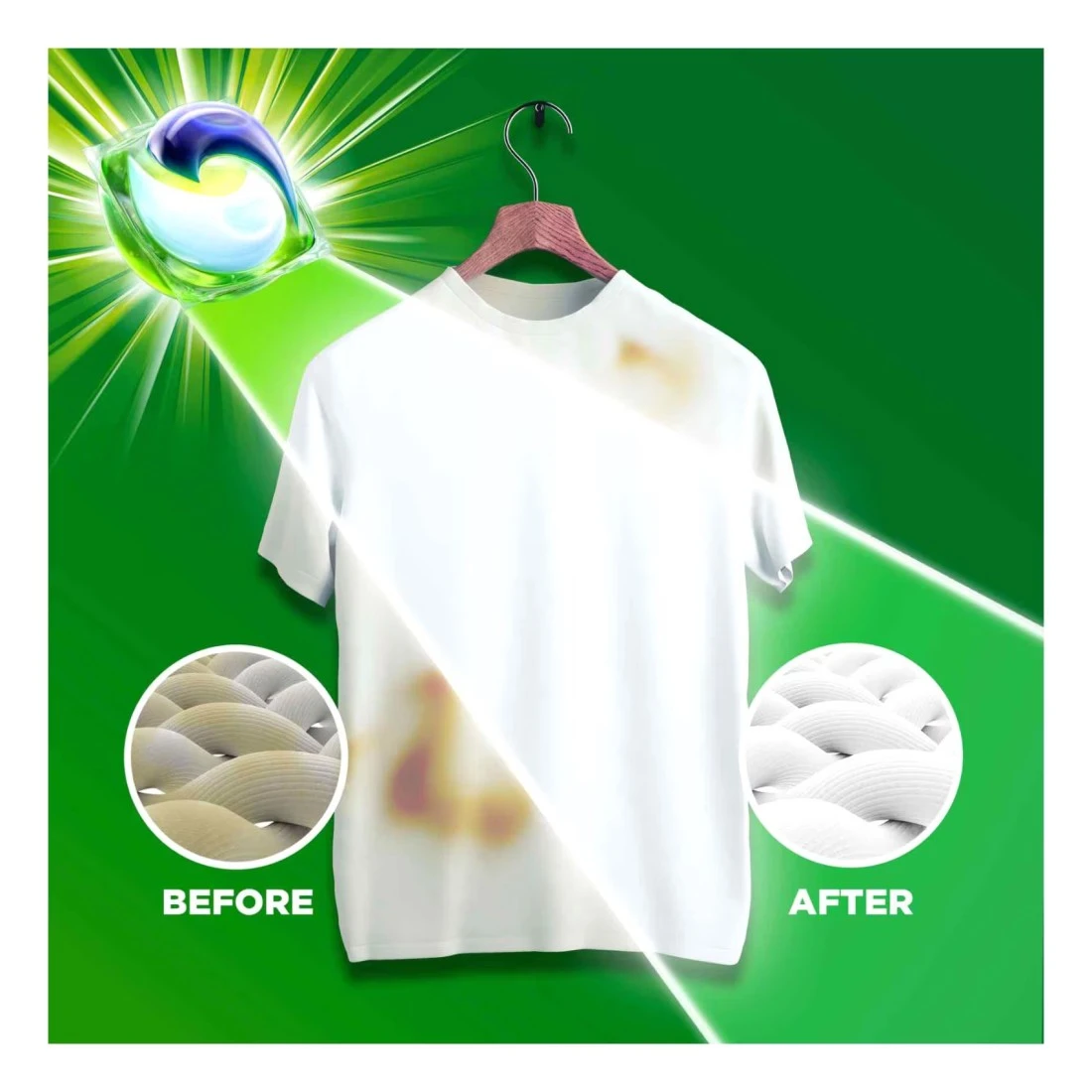 - يوفر إزالة قوية للبقع في غسلة واحدة