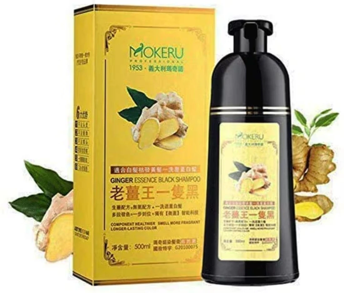 Mokeru Natural Ginger Black Hair Dye Shampoo Fast Cover Gray White In 5 Minutes With LISITA Lip Mask