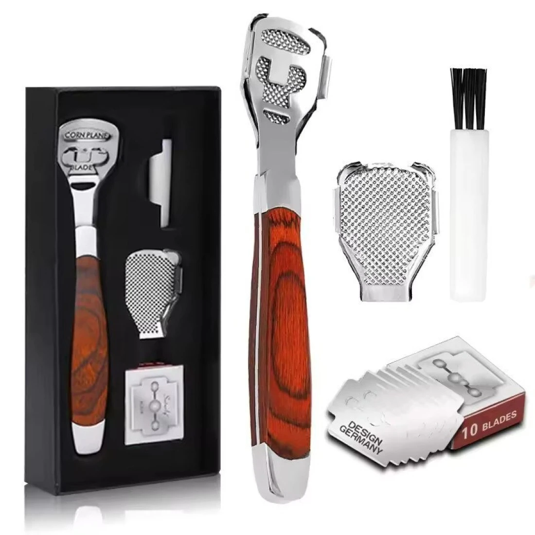 مجموعة أدوات احترافية لإزالة مسامير القدمين - ماكينة حلاقة القدم، مكشطة، مقشر الجلد الميت، مبرد، مقص الذرة والبشرة - تنعيم الكعبين المتشققين