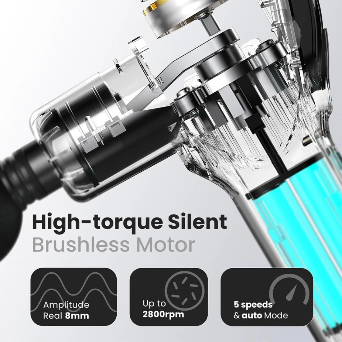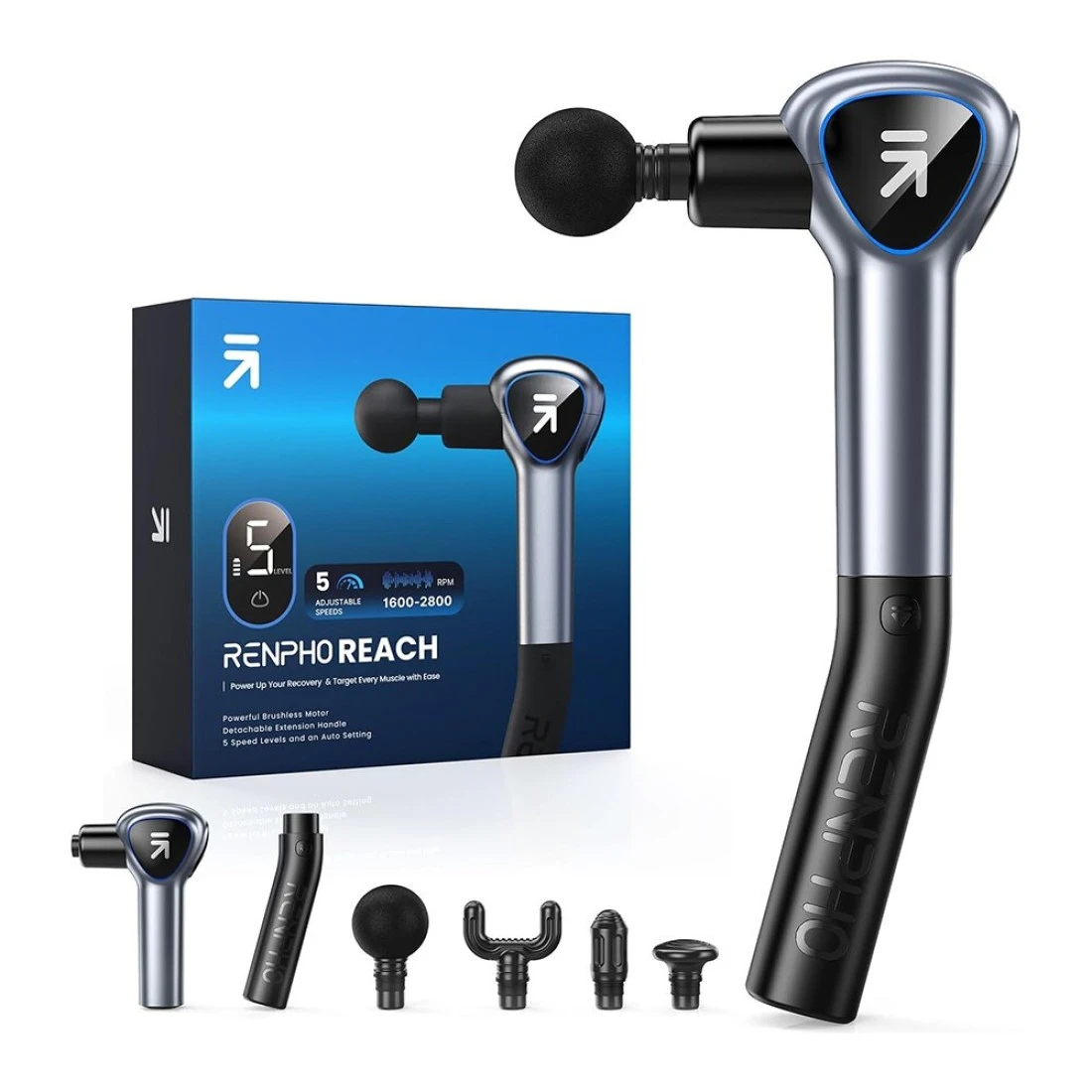 Muscle Massage Gun with Removable Handle, RENPHO Reach Massage Gun, 5 Speed, 4 Massage Heads, 2 in 1 Deep Tissue Hand Massager