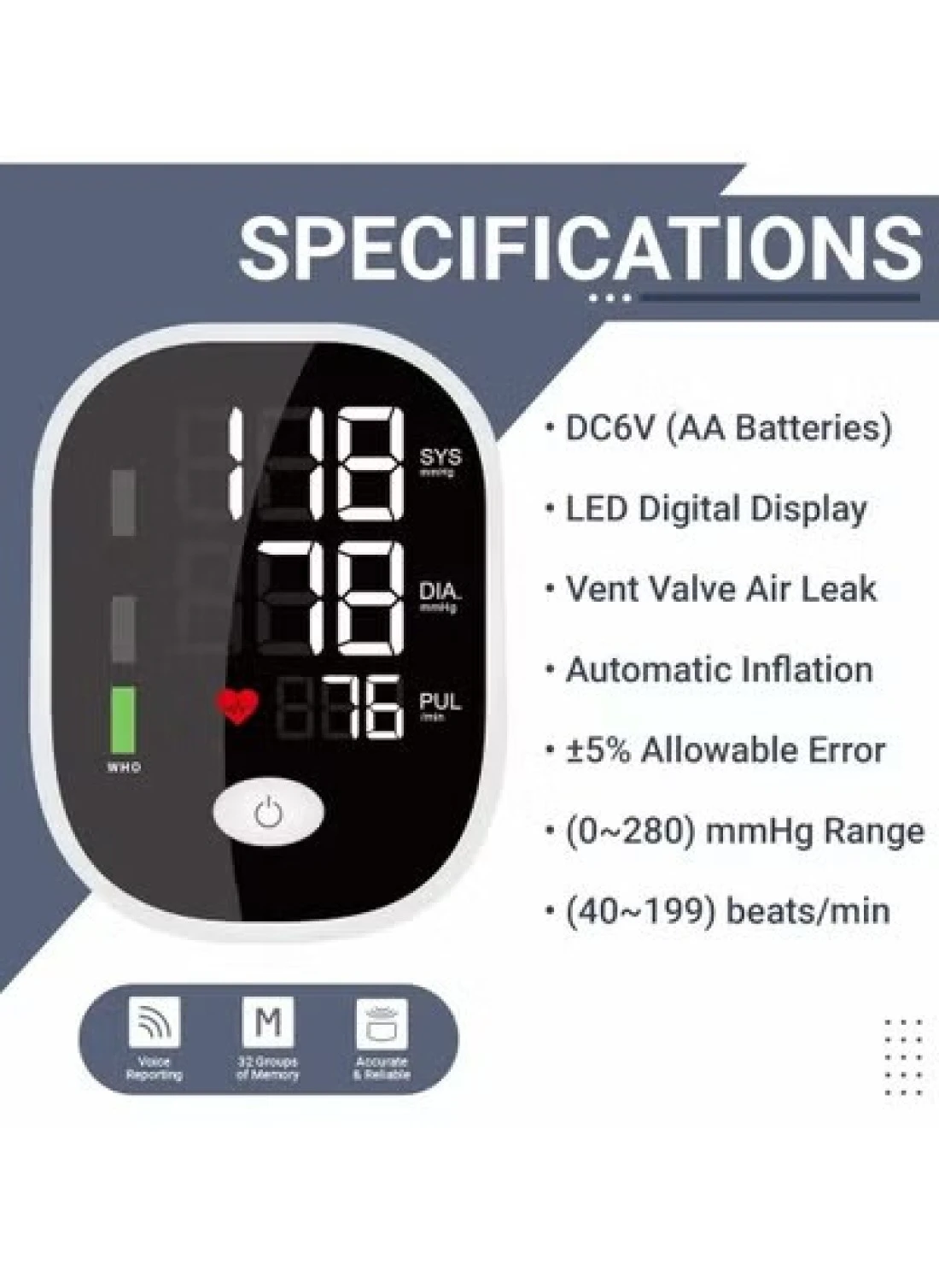 • Voice Guidance: Equipped with a built-in speaker, the monitor provides audio prompts and announcements of blood pressure readings, making it accessible for those with visual impairments.