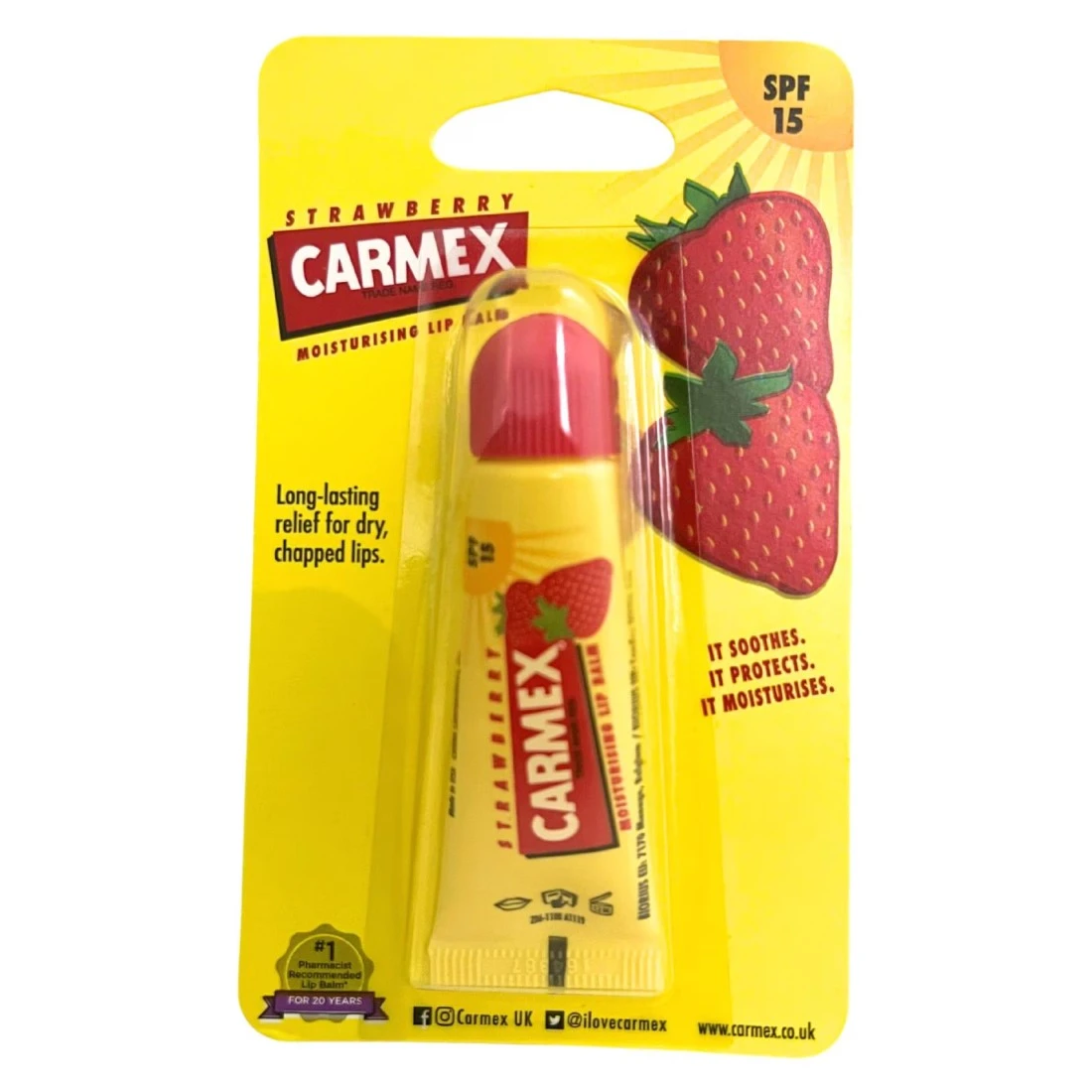 - يوفر مرطب الشفاه بنكهة الكرز من كارميكس ترطيبًا دائمًا للشفاه.