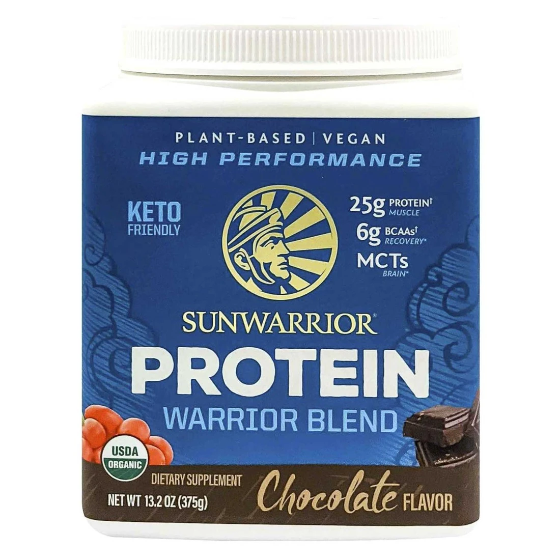 صن واريور مسحوق بروتين عضوي واريور بلند مكمل بنكهة شكولاته 375غرام
