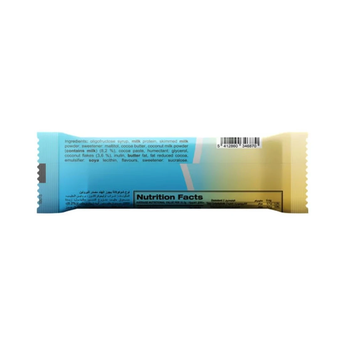 ingredients : شراب أوليغوفركتوز ، بروتين الحليب ، مسحوق الحليب منزوع الدسم M محلي: مالتيتول ، زبدة الكاكاو ، مسحوق حليب جوز الهند (يحتوي على الحليب) (8.2٪) ، معجون الكوكا ، مرطب: غليسيرين ، رقائق جوز الهند (3.6٪) ، إينولين ، دهون الزبدة ، دهون منخفضة ، مستحلب الكاكاو: ليسيثين الصويا ، نكهات ، محلي: سكرالوز.
