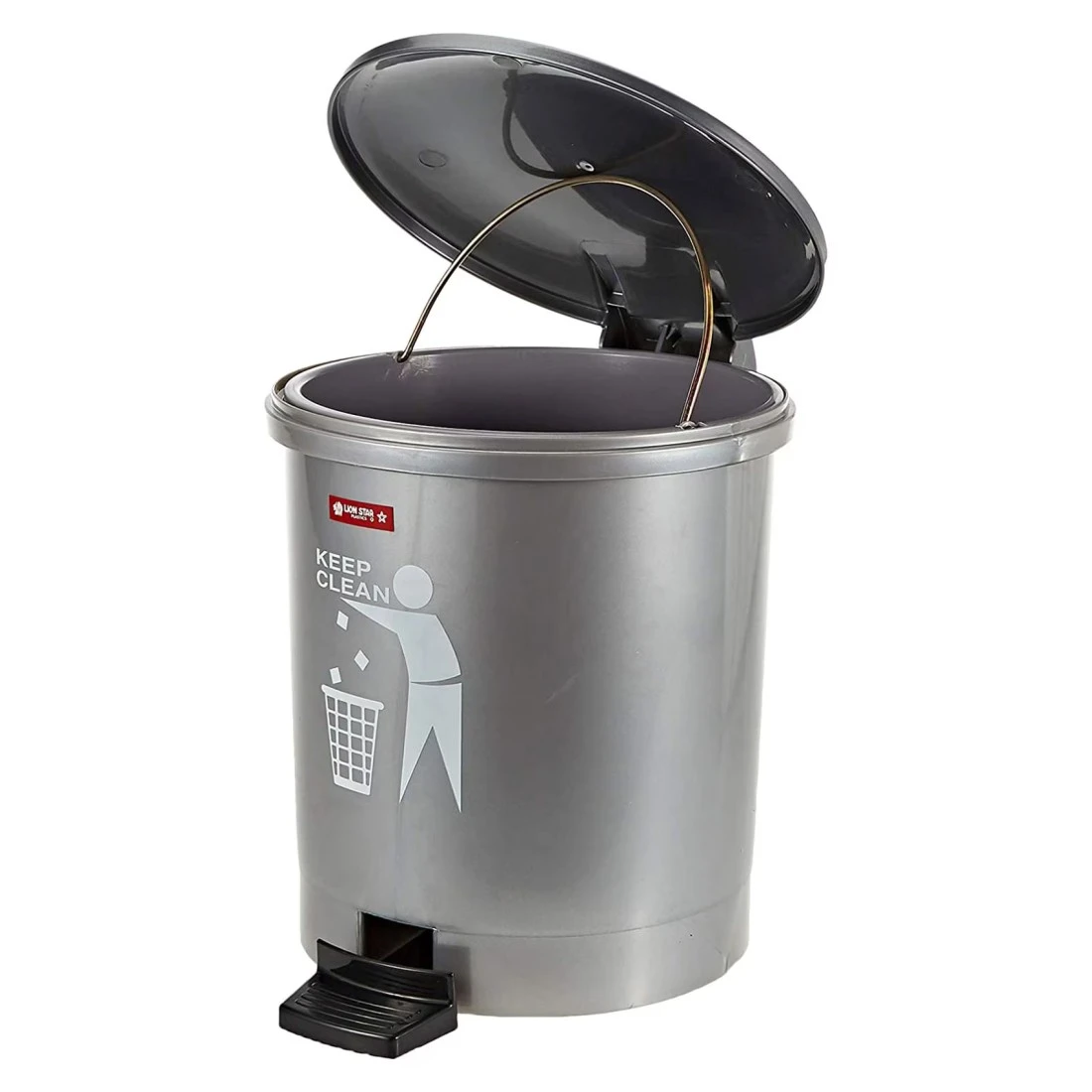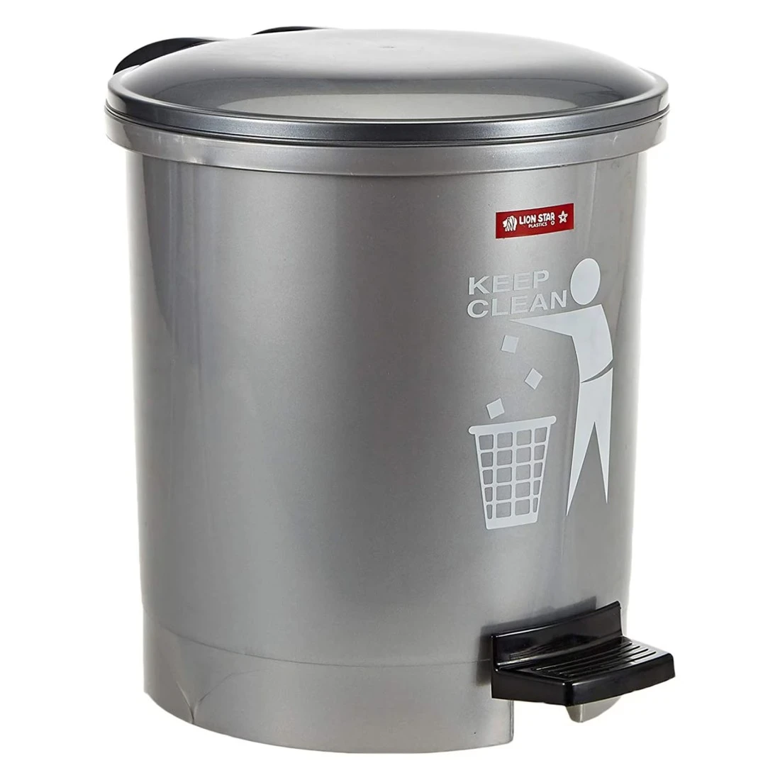 ليون ستار سلة مهملات ذات خطوة مستديرة 5 لتر - رمادي