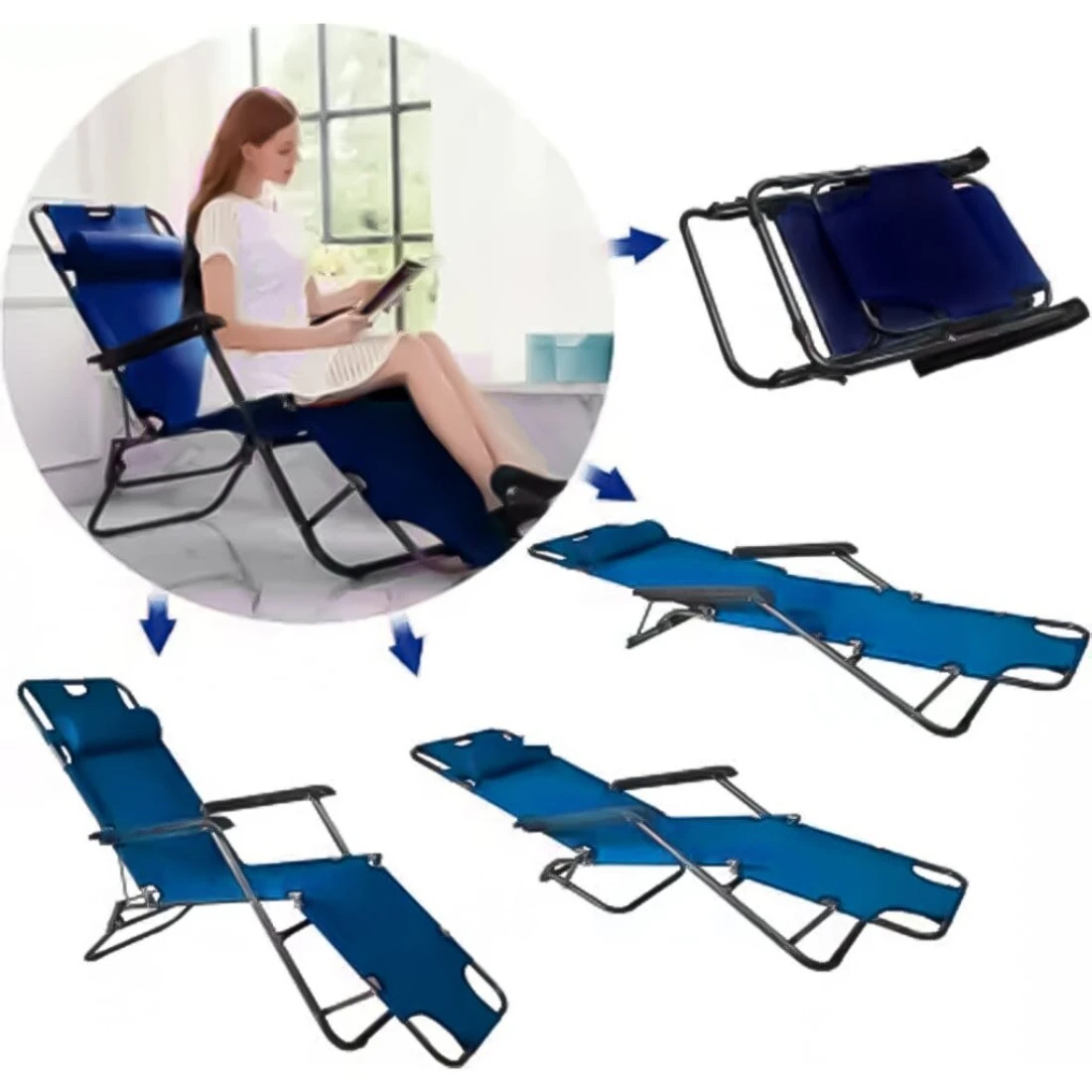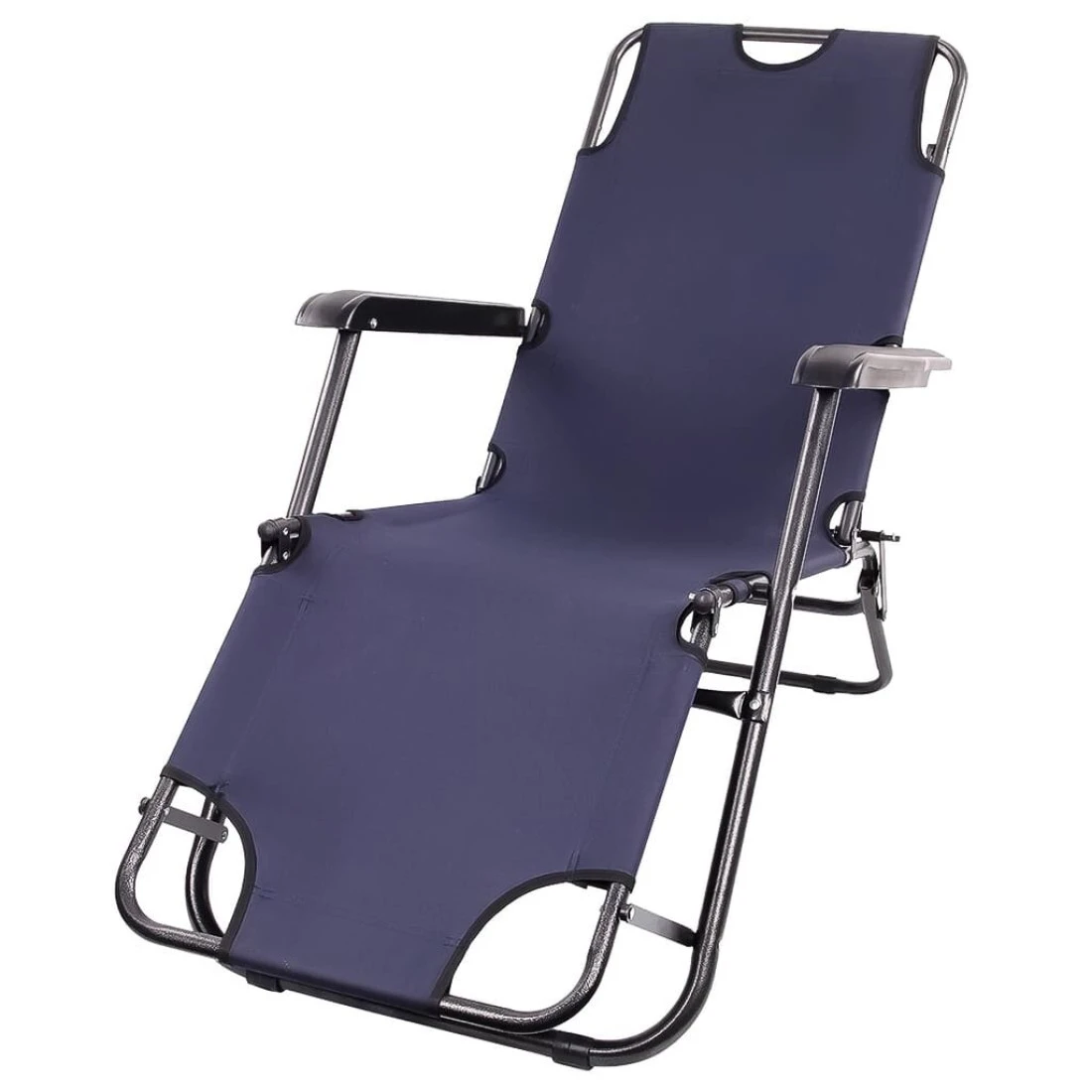 كراسي تخييم قابلة للطي للبالغين مع مساند للذراعين خفيفة الوزن ومحمولة لكرسي الشاطئ مثالية لرحلات القوافل وحفلات الشواء والحديقة والنزهة LB-20455 - أزرق داكن