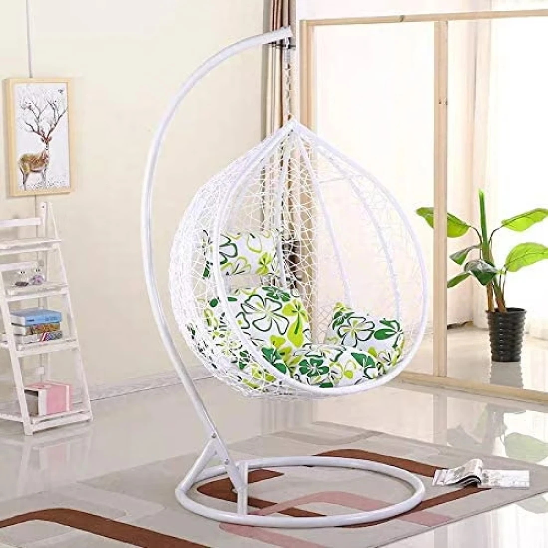 كرسي معلق مريح في الهواء الطلق للتعليق على الفناء الخارجي (شكل عش البيض) ابيض (وسادة عشوائية) Yl-3