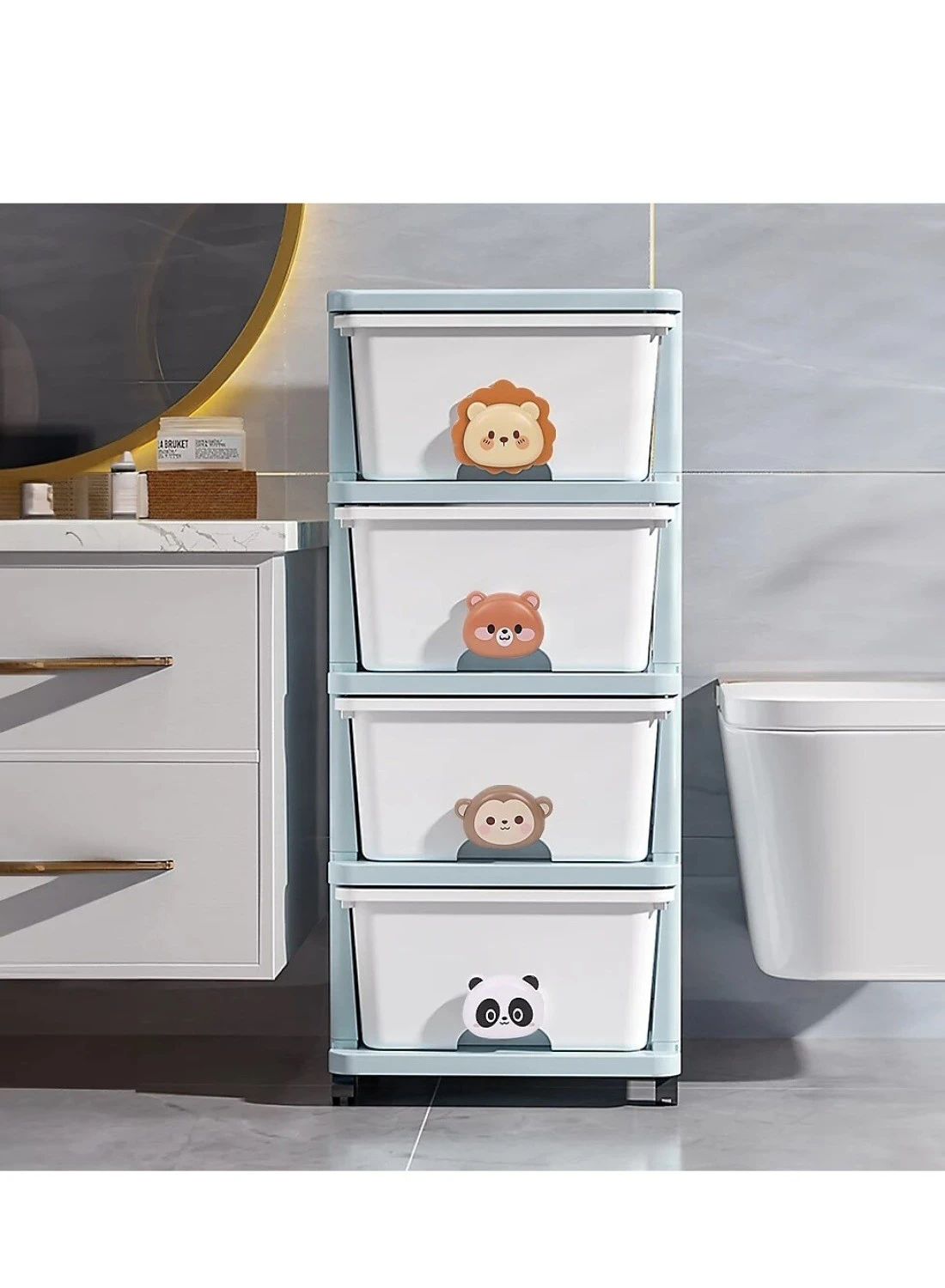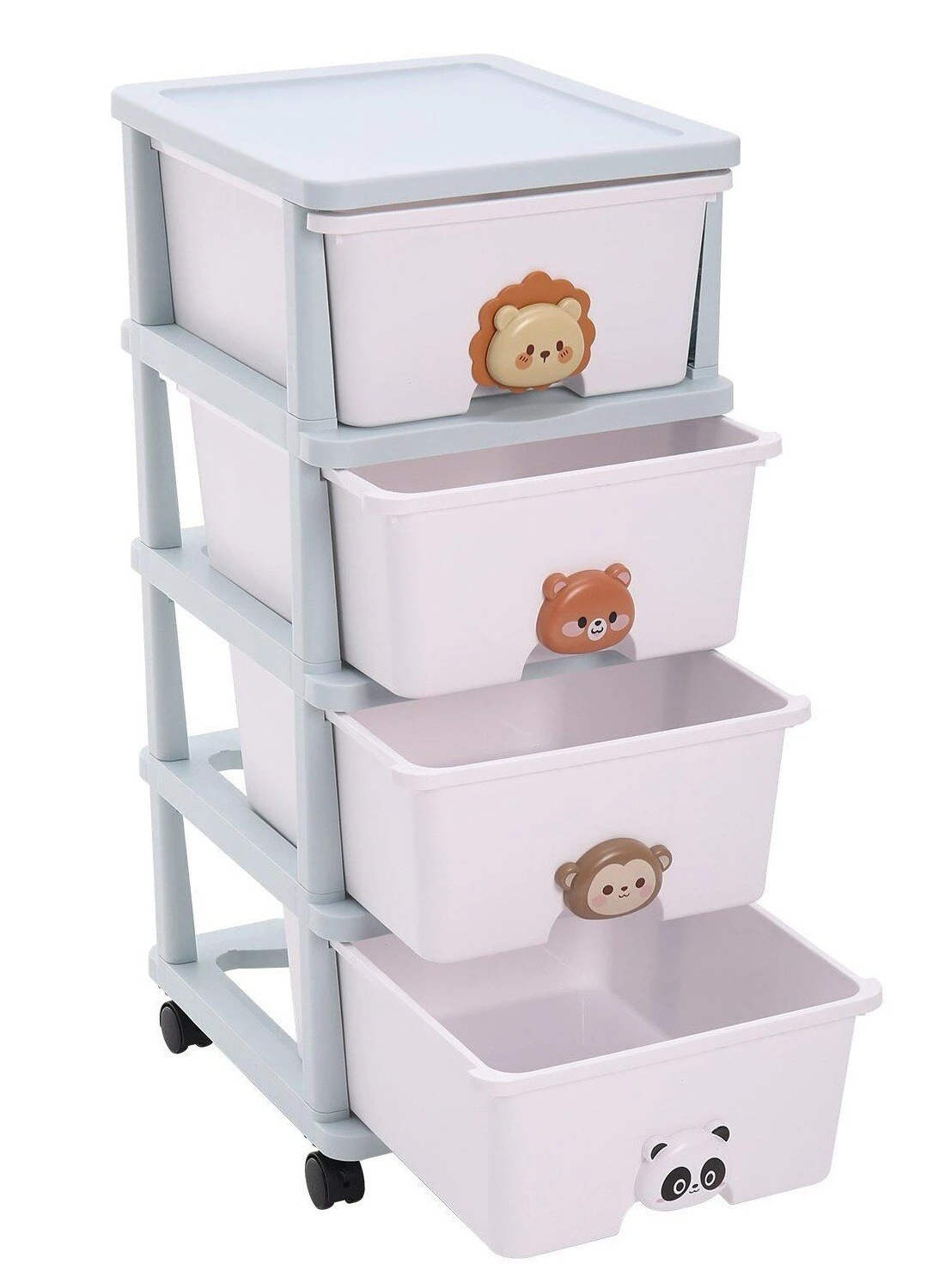 منظم صندوق تخزين الملابس والألعاب للأطفال بأربعه طبقات و أدراج متدحرجة من البلاستيك مع عجلات للاستخدام في المكتب أو المطبخ أو الحمام أو غرفة المعيشة أو غرفة اللعب أو الدراسة.