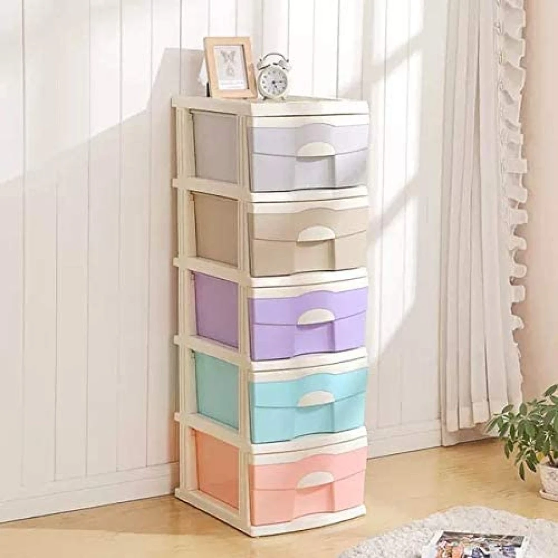 اي اكس صندوق تخزين من خمس طبقات من البلاستيك، خزانة تخزين بأدراج لملابس الأطفال، متعددة الألوان