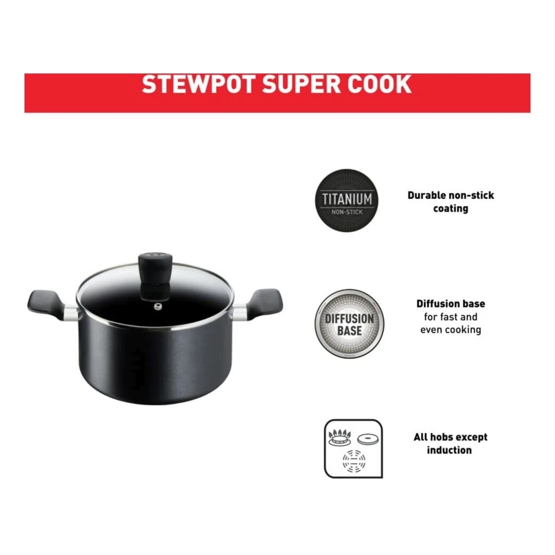 تيفال جي6 سوبر كوك قدر طهي مع غطاء -أسود 30 سم.