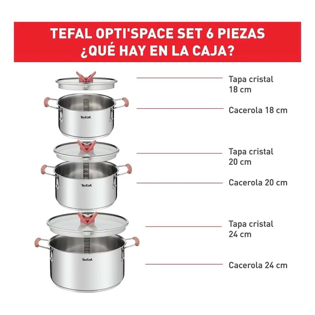 تيفال أوبتي سبيس مجموعة أواني طهي من الستانلس ستيل 6 قطع