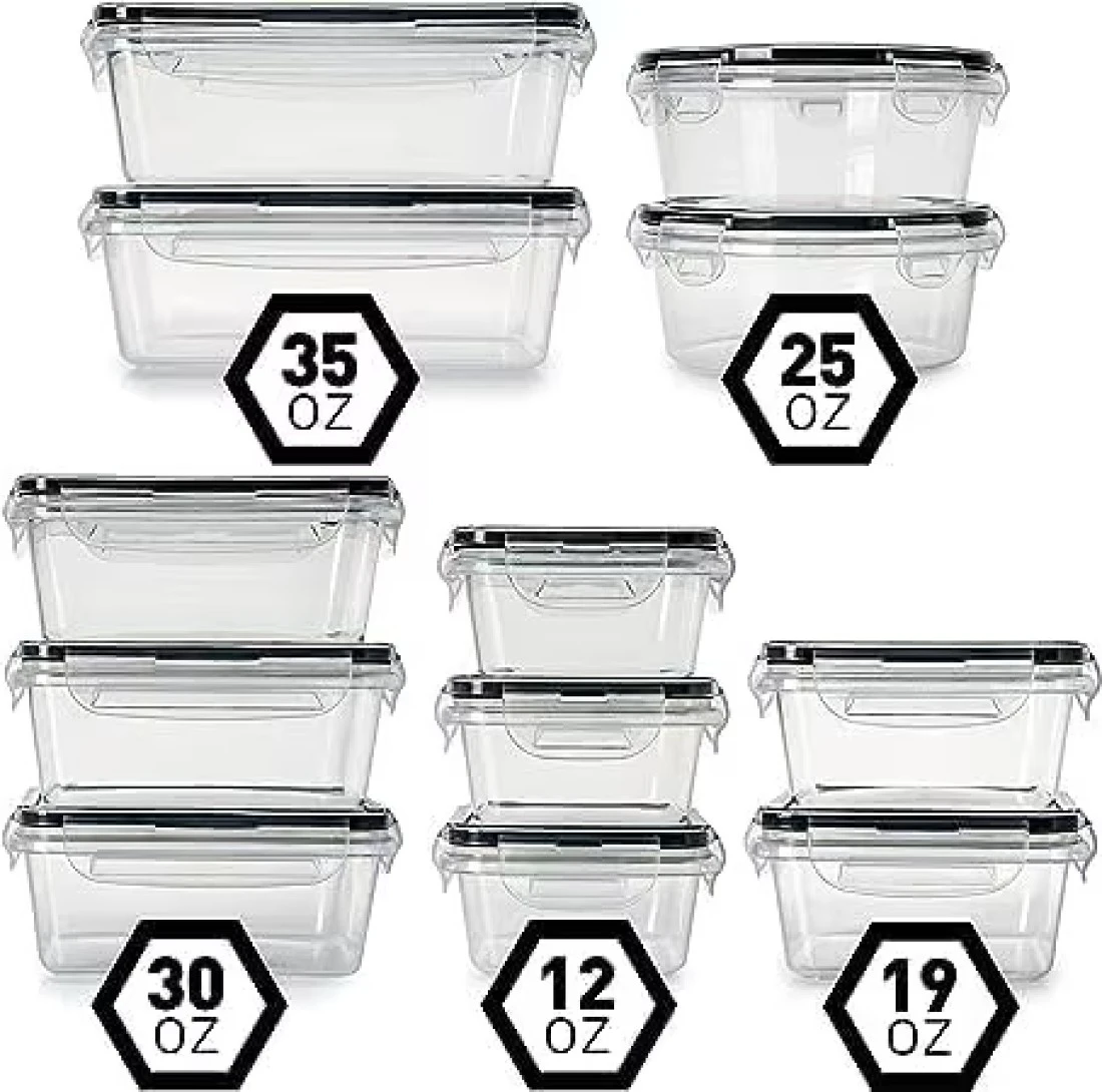 ماهمير® مجموعة حاويات اعداد الوجبات محكمة الغلق مع اغطية قفل، 12 قطعة من حاويات تخزين الطعام البلاستيكية القابلة لاعادة الاستخدام، صناديق تنظيم للمطبخ قابلة للتكديس، خالية من BPA وامنة للاستخدام في
