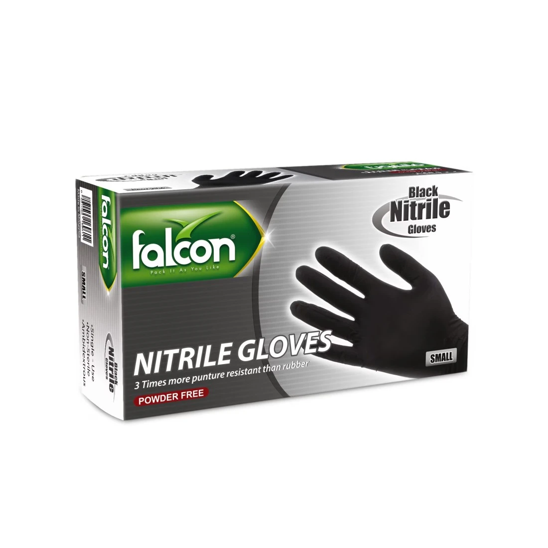 Falcon Nitrile Black Powder Free Gloves- Small 100/Pack