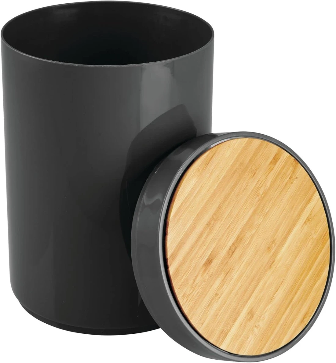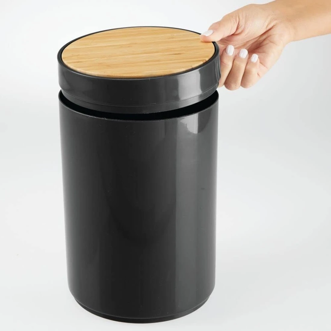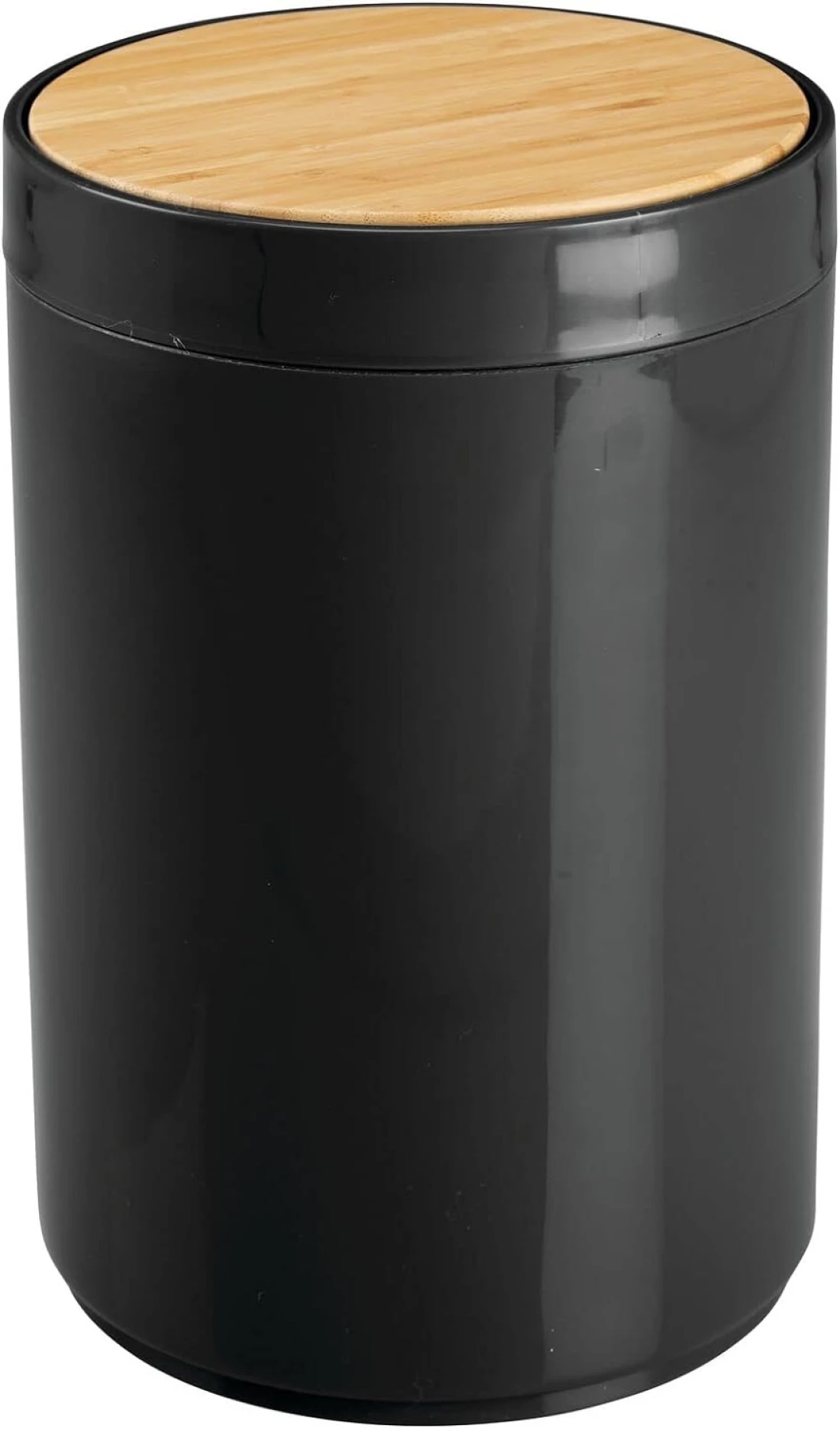 Black Waste Bin With Bamboo Lid