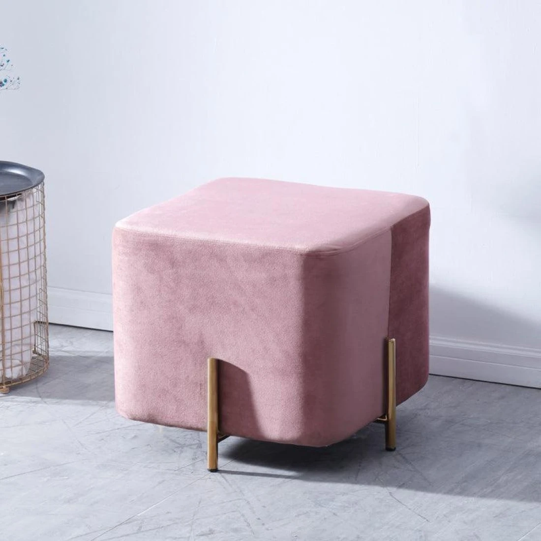 مقعد عثماني مربع فاخر مخملي خشبي - لمسة ديكور منزلي فخمة وأنيقة