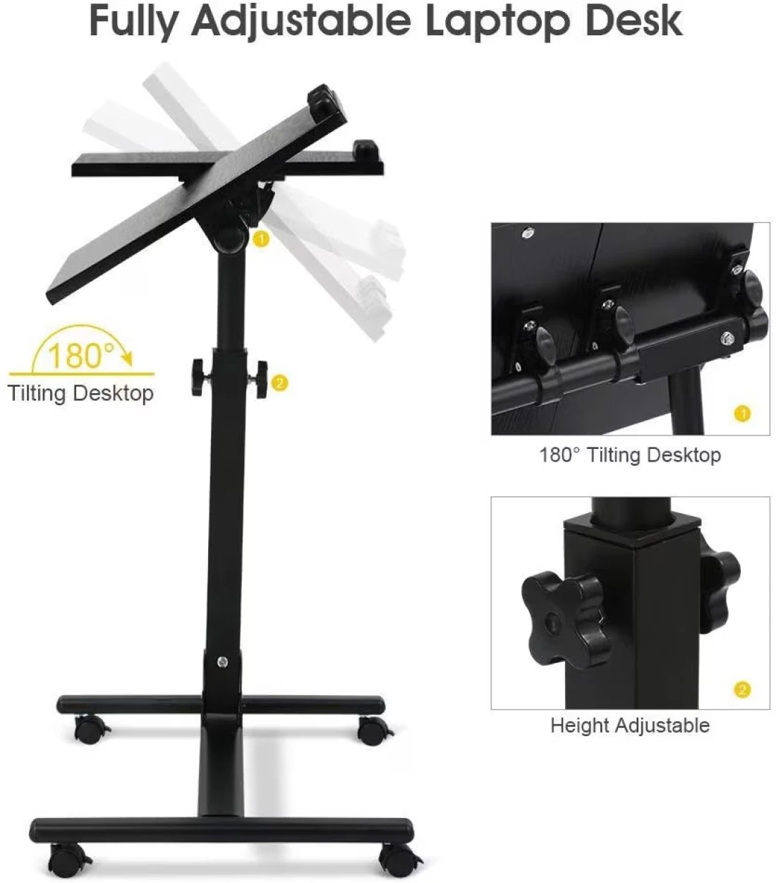 Height Adjustable & Mobile: The PPS Laptop Table boasts adjustable height settings to fit your needs, from working on the sofa to using it as a standing desk. Plus, it features four wheels with brakes for easy positioning and stability.