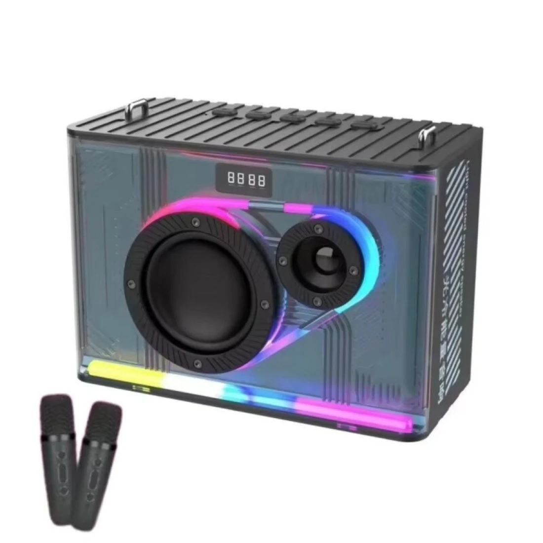 مكبر صوت كاريوكي بلوتوث مع ميكروفون، مكبر صوت محمول بدون استخدام اليدين مع أضواء LED، مكبر صوت للحفلات قابل لإعادة الشحن