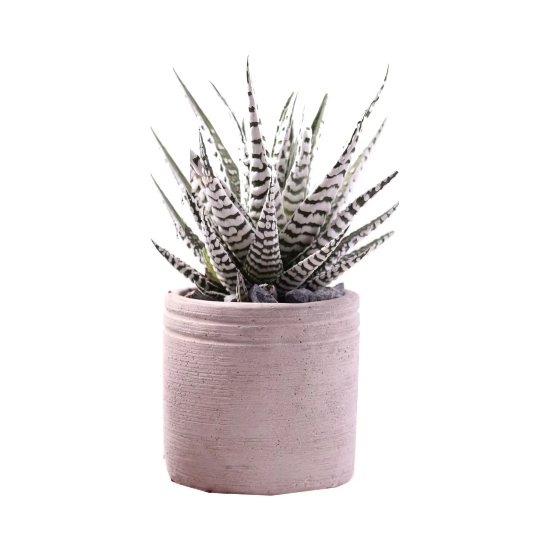 زراعة نبات هاورثيا في وعاء أسمنتي دائري عادي مقاس 12×18 سم