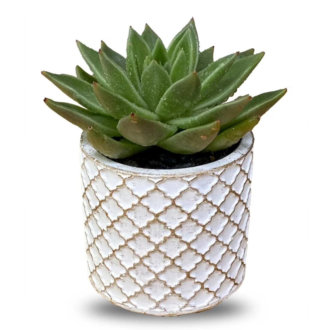 إينايبل نبات إيشيفيريا في وعاء دائري أبيض من الألياف الأسمنتية 14×12 سم