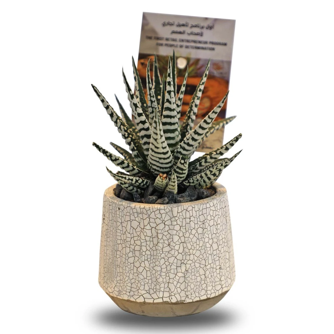 إينيبل هاورثيا قابلة للزراعة في وعاء إسمنتي مستدير أبيض مقاس 13×18 سم