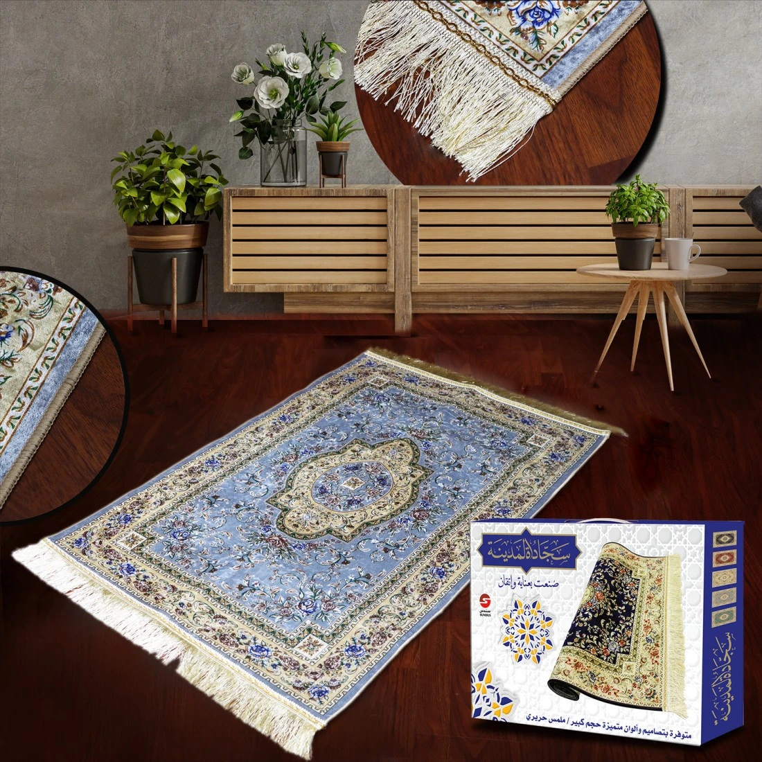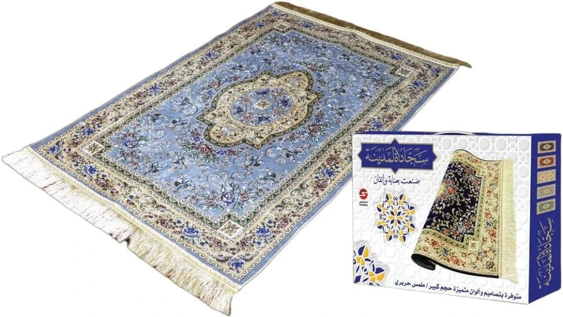 سجادة صلاة مريحة من الحرير مريحة للصلاة لون ازرق سماوي