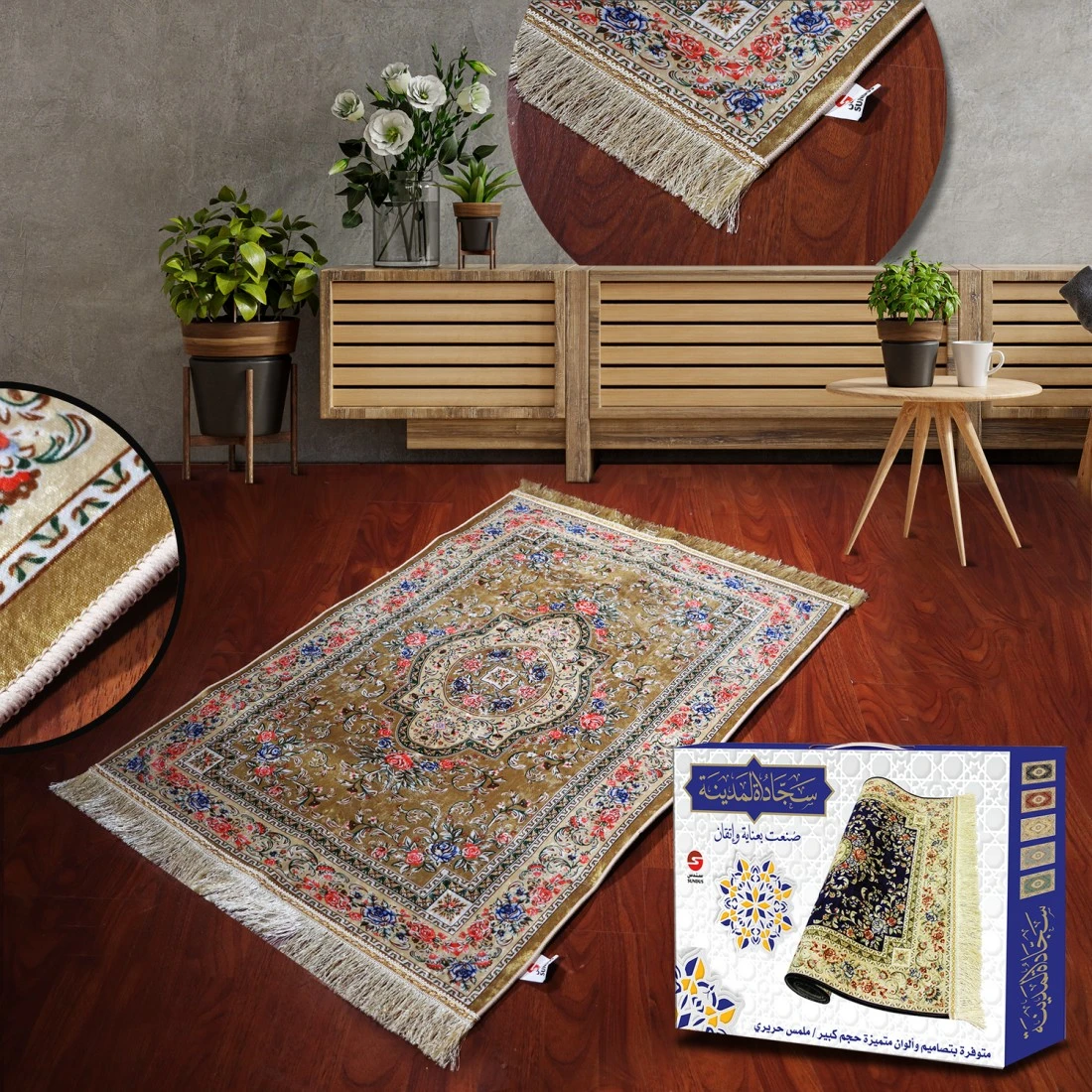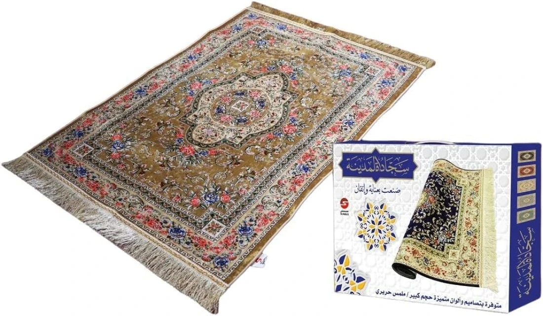 سجادة صلاة مريحة من الحرير مريحة للصلاة لون ذهبي