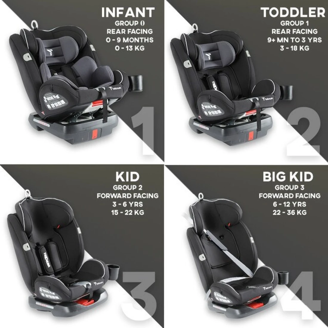Teknum Evolve 360 Car Seat 0 - 12yrs Grey