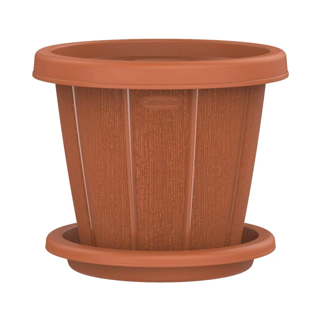 كوزموبلاست أصيص زهور بتصميم خشب الأرز مع صينية 6 بوصة - طيني