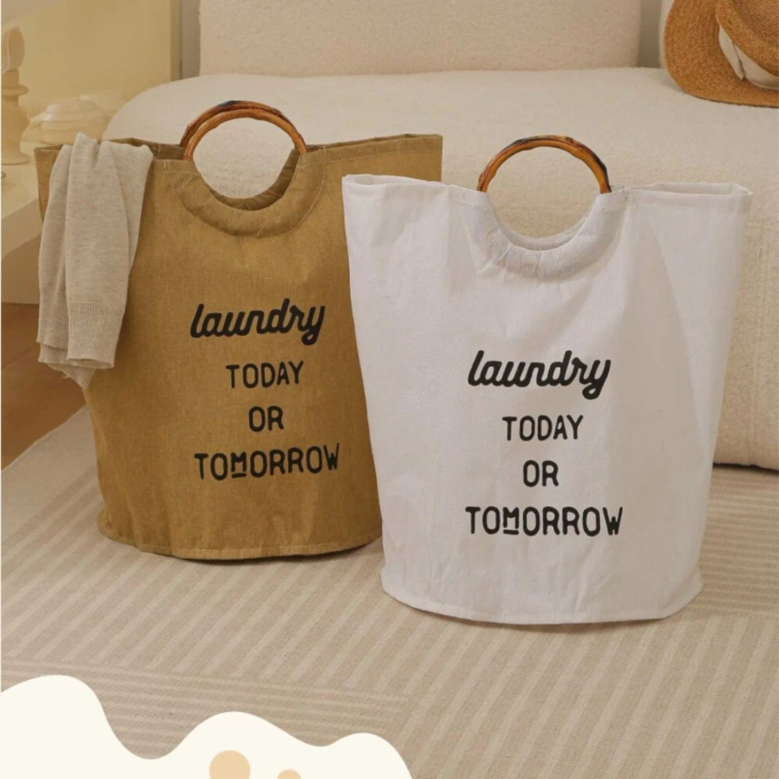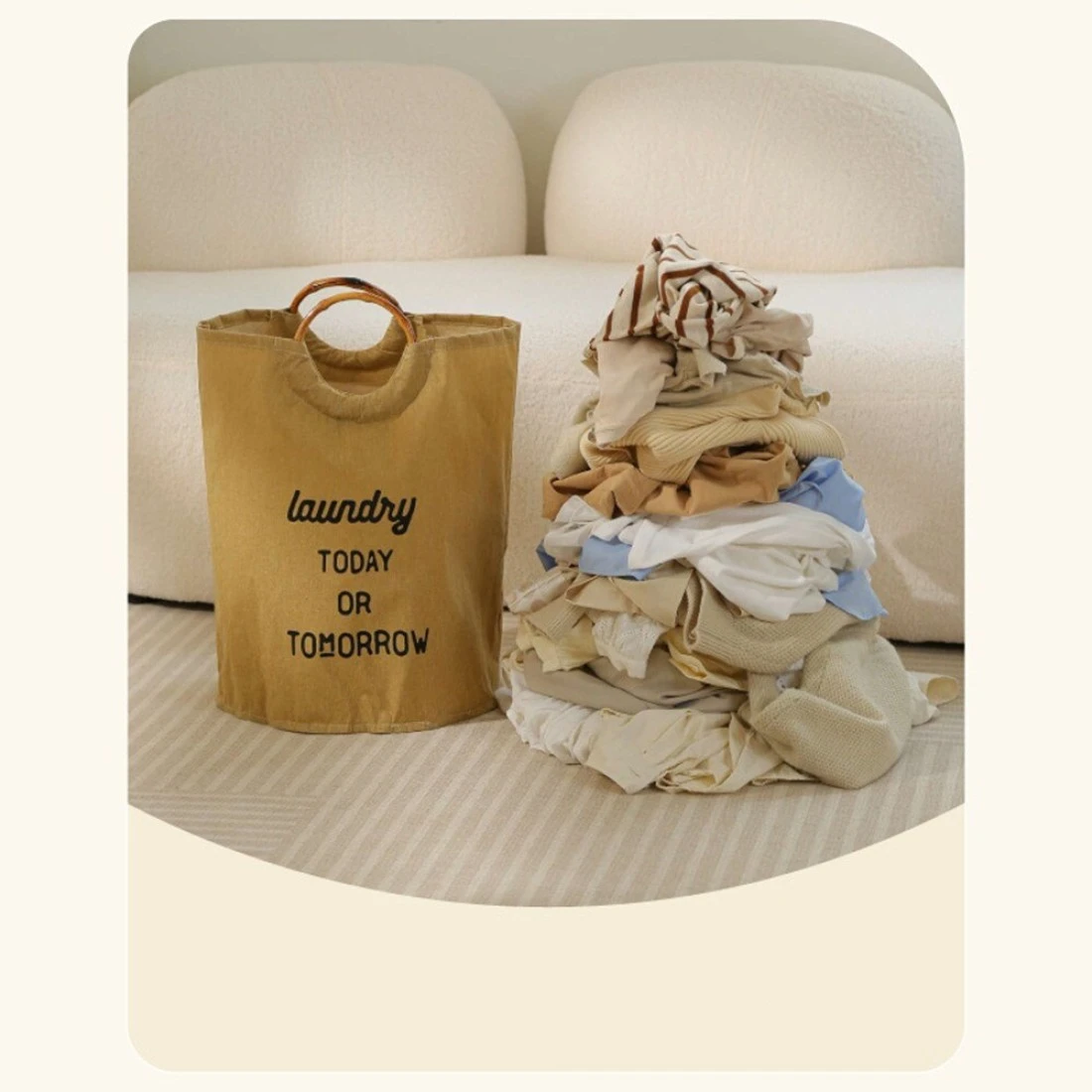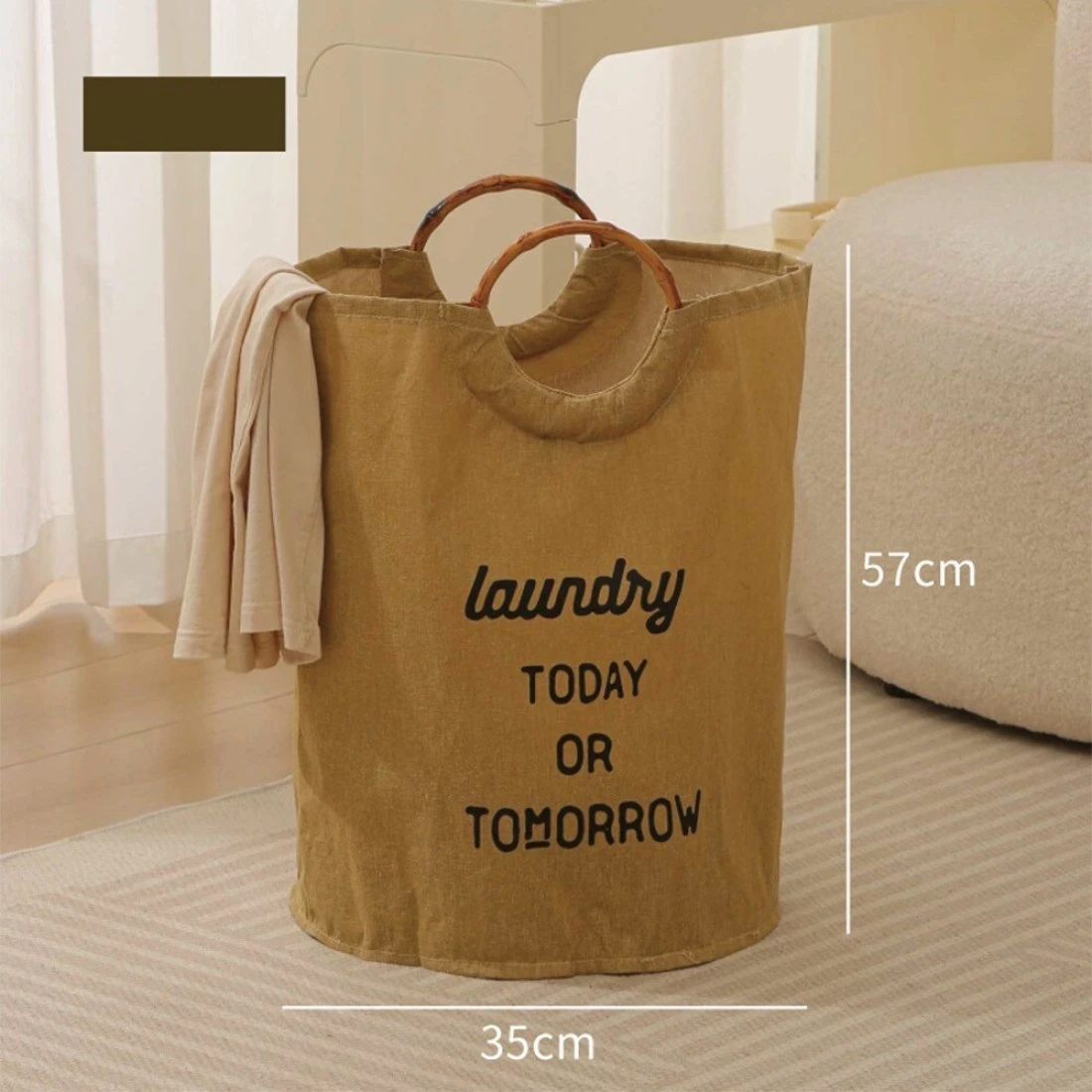 سلة غسيل قابلة للطي مع مقابض - منظم تخزين ملابس بسعة كبيرة (57 × 35 سم)
