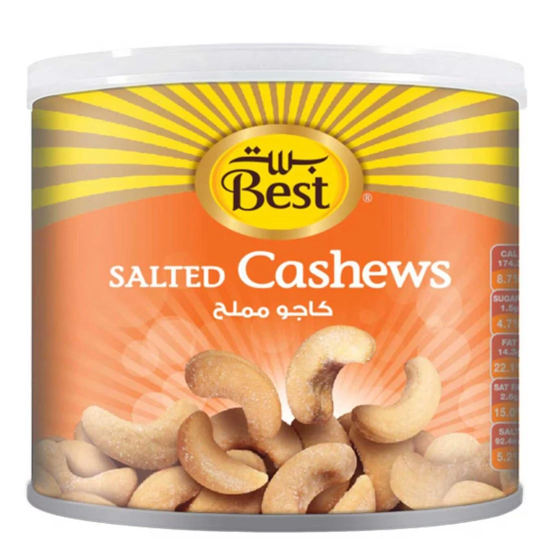 الكاجو المملح بست هو كاجو عالي الجودة، محمص بمهارة ومملح قليلاً لإتقان. يُعد هذا الكاجو خيارًا لذيذًا ومغذيًا كوجبة خفيفة، يُمكن الاستمتاع به في أي وقت وفي أي مكان. حجم العلبة المعدنية المريح مثالي لتناولها أثناء التنقل أو كجزء من نظام غذائي متوازن. الكاجو غني بالبروتين والدهون الصحية والمعادن الأساسية، مما يجعله مصدرًا رائعًا للطاقة وخيارًا مُرضيًا لمن يبحثون عن بديل صحي للوجبات الخفيفة التقليدية. بفضل مذاقه الفريد وقوامه المقرمش، سيحظى هذا الكاجو المملح بشعبية واسعة بين مُحبي الكاجو من جميع الأعمار.