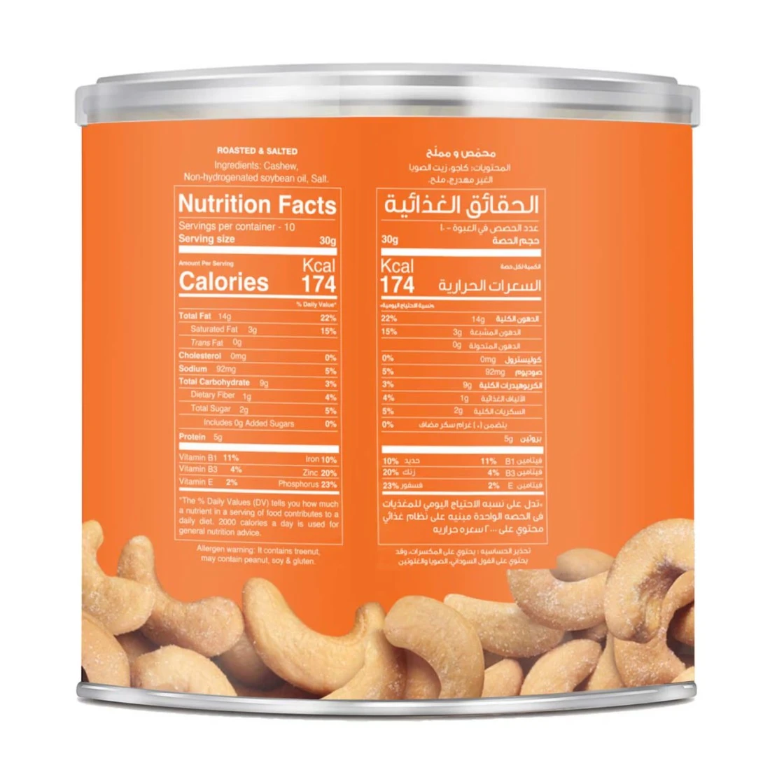 ingredients : كاجو، زيت فول الصويا غير المهدرج، ملح