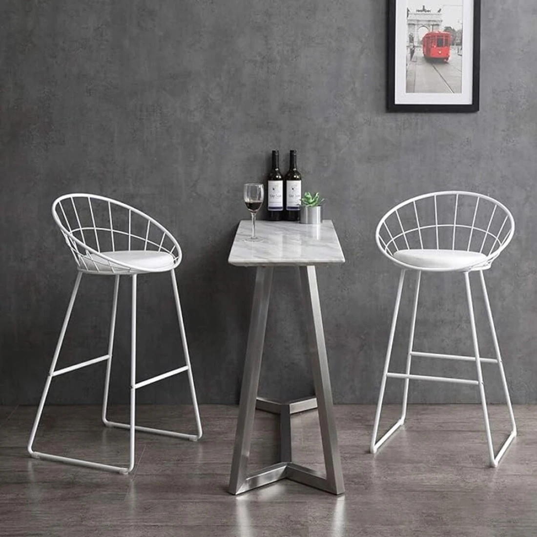 Jeffcoco Furniture Bar Stool, High Bar Chair White Steel Frame Leather Seat Chair For Kitchen Bar table Dining Chair (Two Piece)