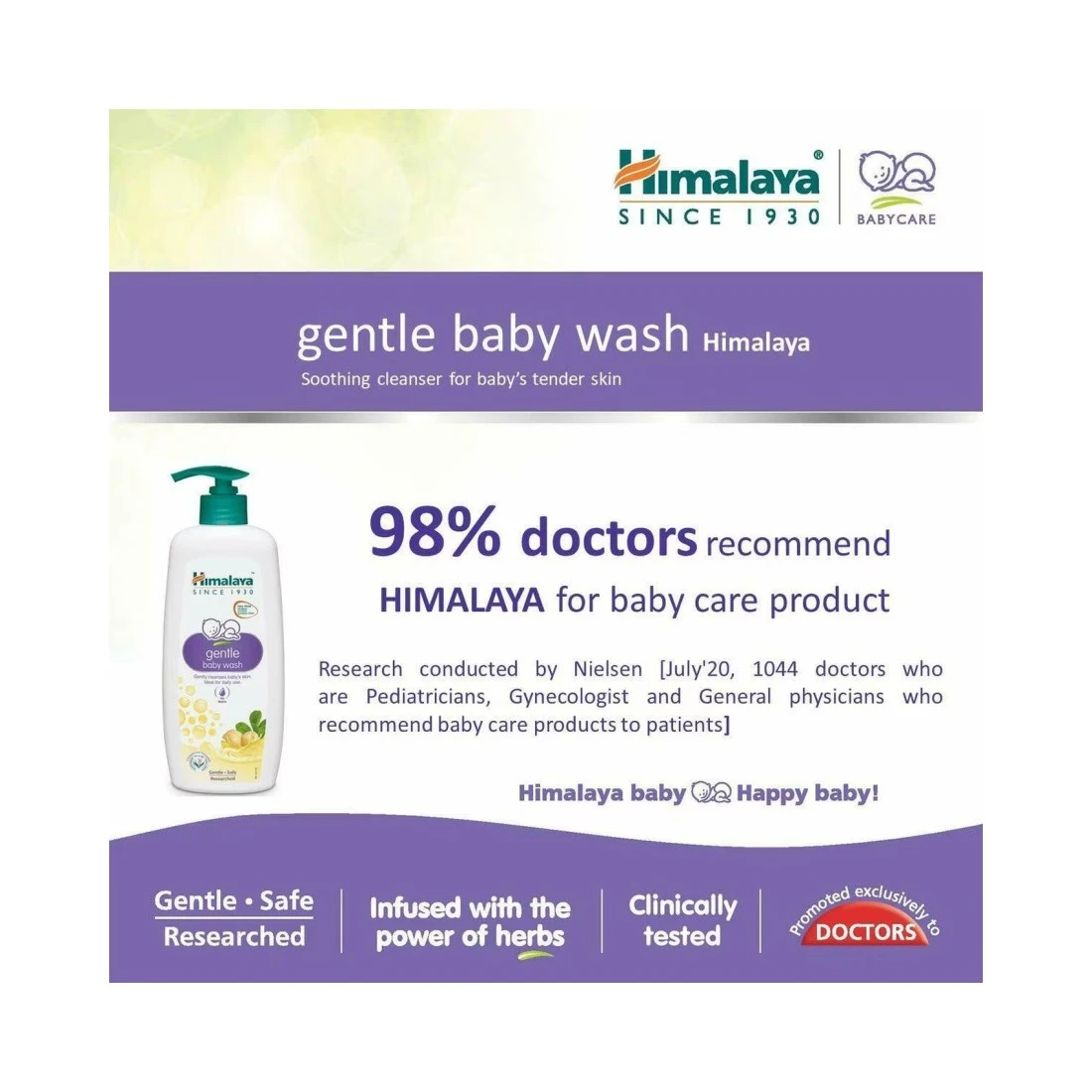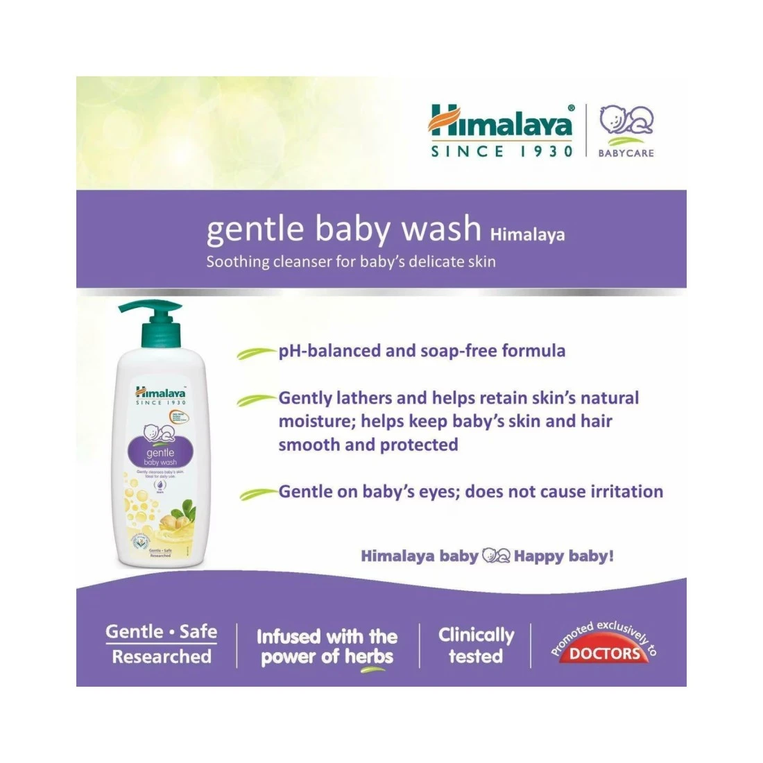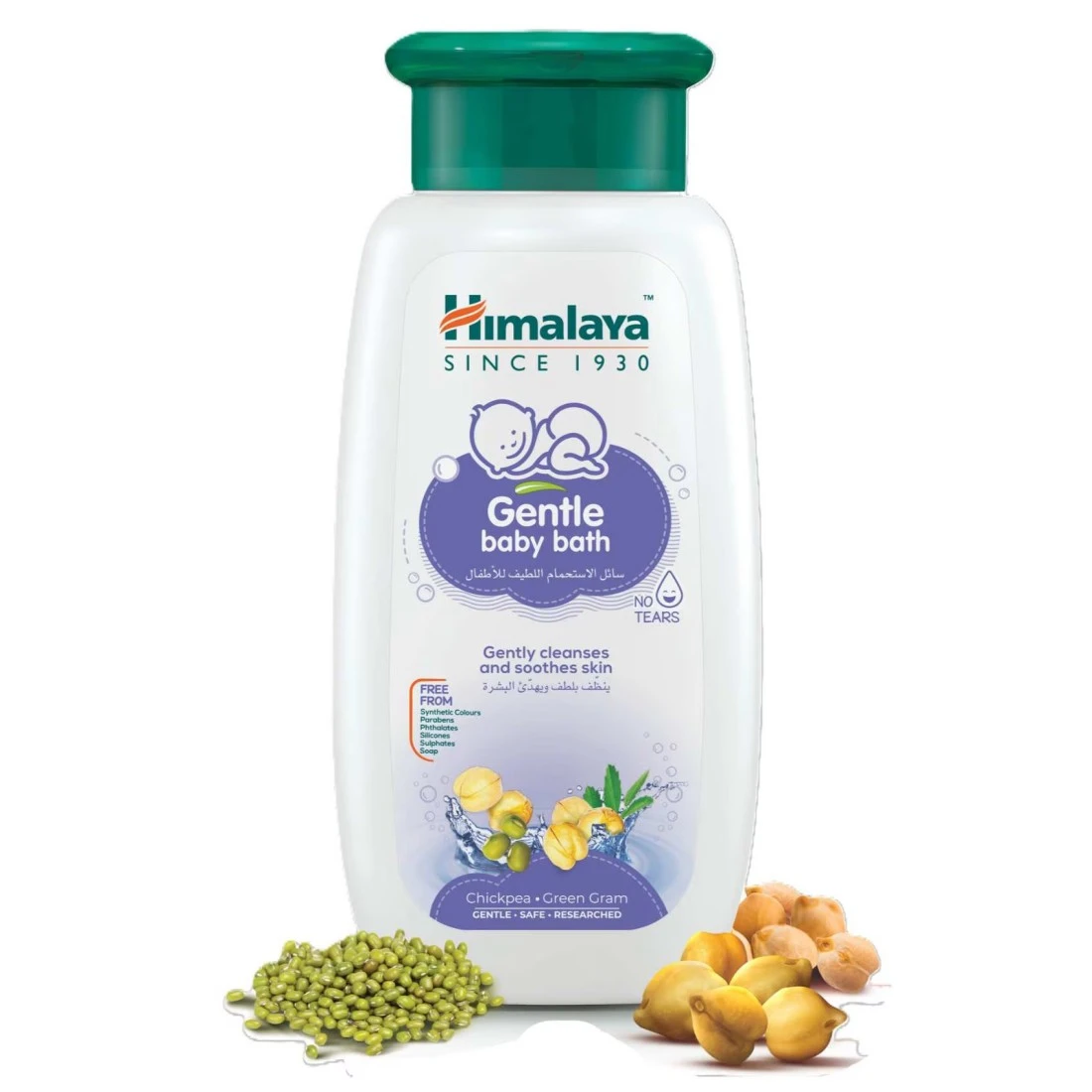 - غسول الأطفال اللطيف من هيمالايا بتركيبته الفريدة التي لا دموع فيها غني بخلاصة الحمص والحلبة والجرام الأخضر الذي ينظف بشرة مولودك الجديد بلطف